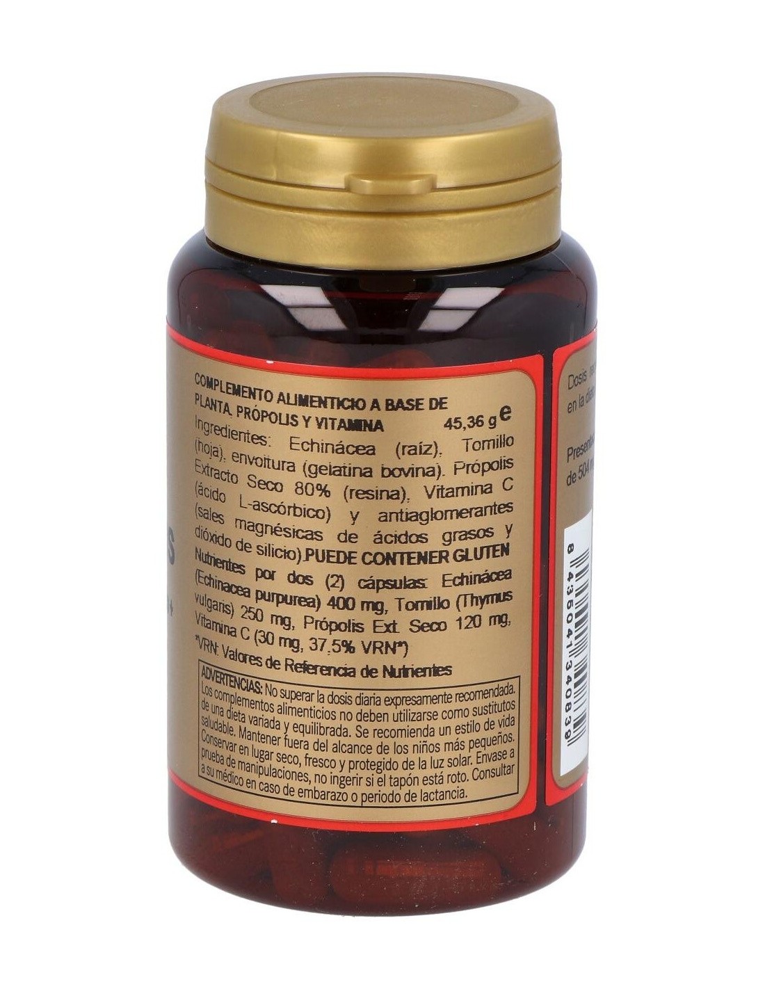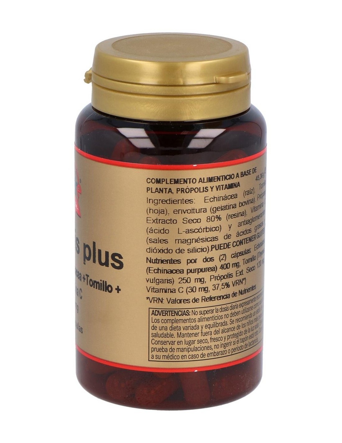 Complemento alimenticio formulado con própolis que actúa como antibacteriano, antiviral, inmunoestimulante, cicatrizante y ligeramente analgésico. También contiene echinácea que contribuye a incrementar las defensa y a hacer frente a las infecciones. Incluye tomillo que actúa como antiséptico, pectoral y expectoral. Su contenido de vitamina C tiene un efecto antioxidante y fortalce el sistema inmune.