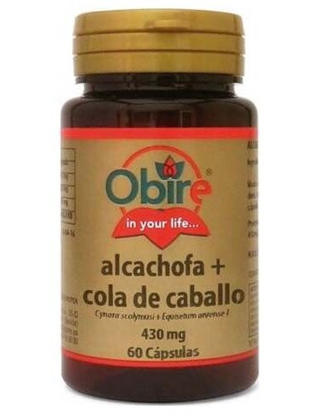 OBIREComplemento alimenticio a base de extracto seco de alcachofa y de cola de caballo. La alcachofa contribuye al normal mantenimiento hepático. Producto libre de alérgenos conforme al Reglamento (UE) Nº 1169/2011. No contiene gluten, ni lactosa.