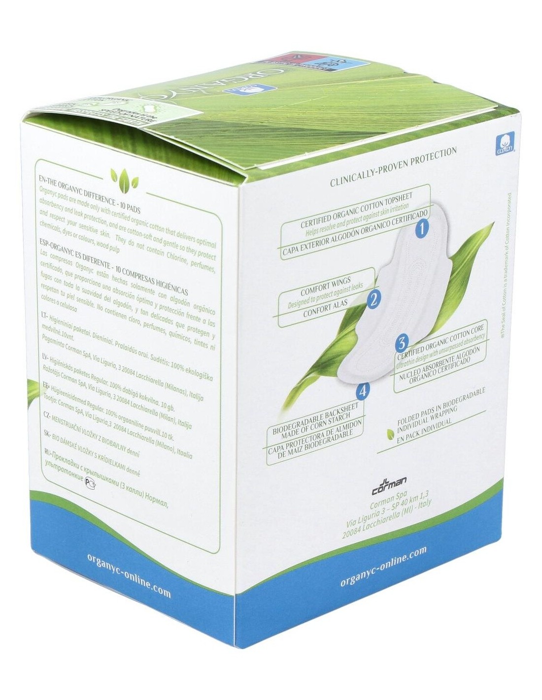 Compresas dia c/alas (bolsa ind) 100% algodón orgánico, 10ud de Organyc