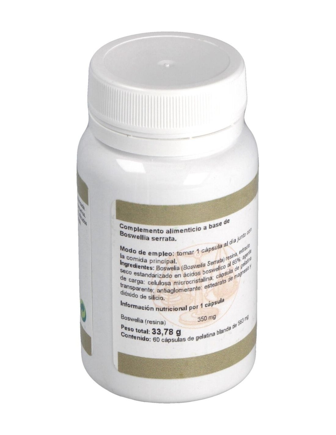 Boswelia serrata (resina) equivalente a 65% ácido boswelico ....350 mg