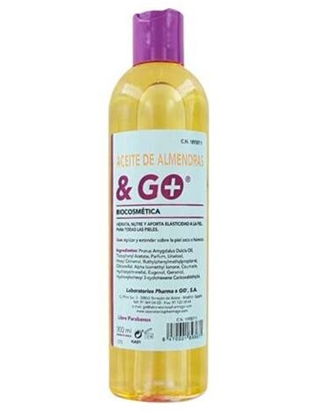 PHARMA & GOAceite corporal emoliente formulado a base de almendras dulces. Contiene vitaminas, minerales y ácidos grasos esenciales.