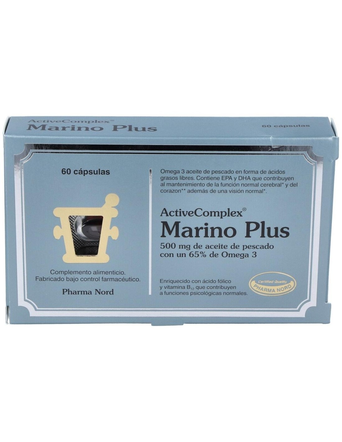 Activecomplex Marino Plus 60Cap. de Pharma Nord es un suplemento diseñado para personas que buscan apoyar su bienestar general mediante ingredientes de origen marino. Su formulación está pensada para quienes desean complementar su dieta con nutrientes específicos que contribuyen al equilibrio diario.