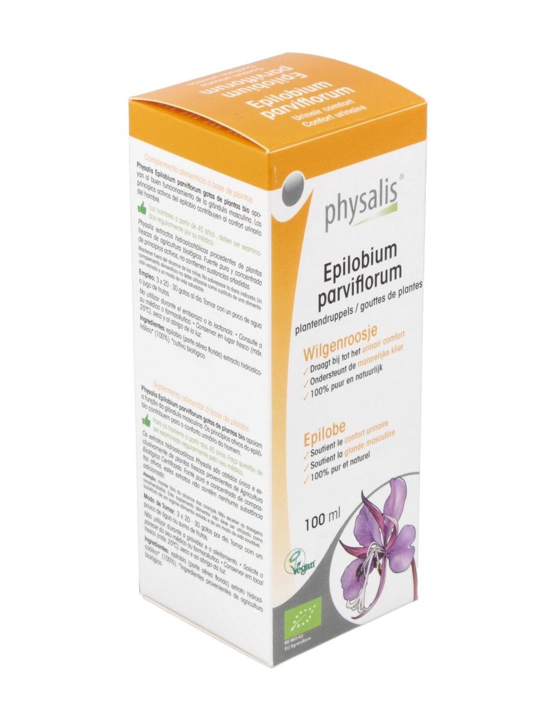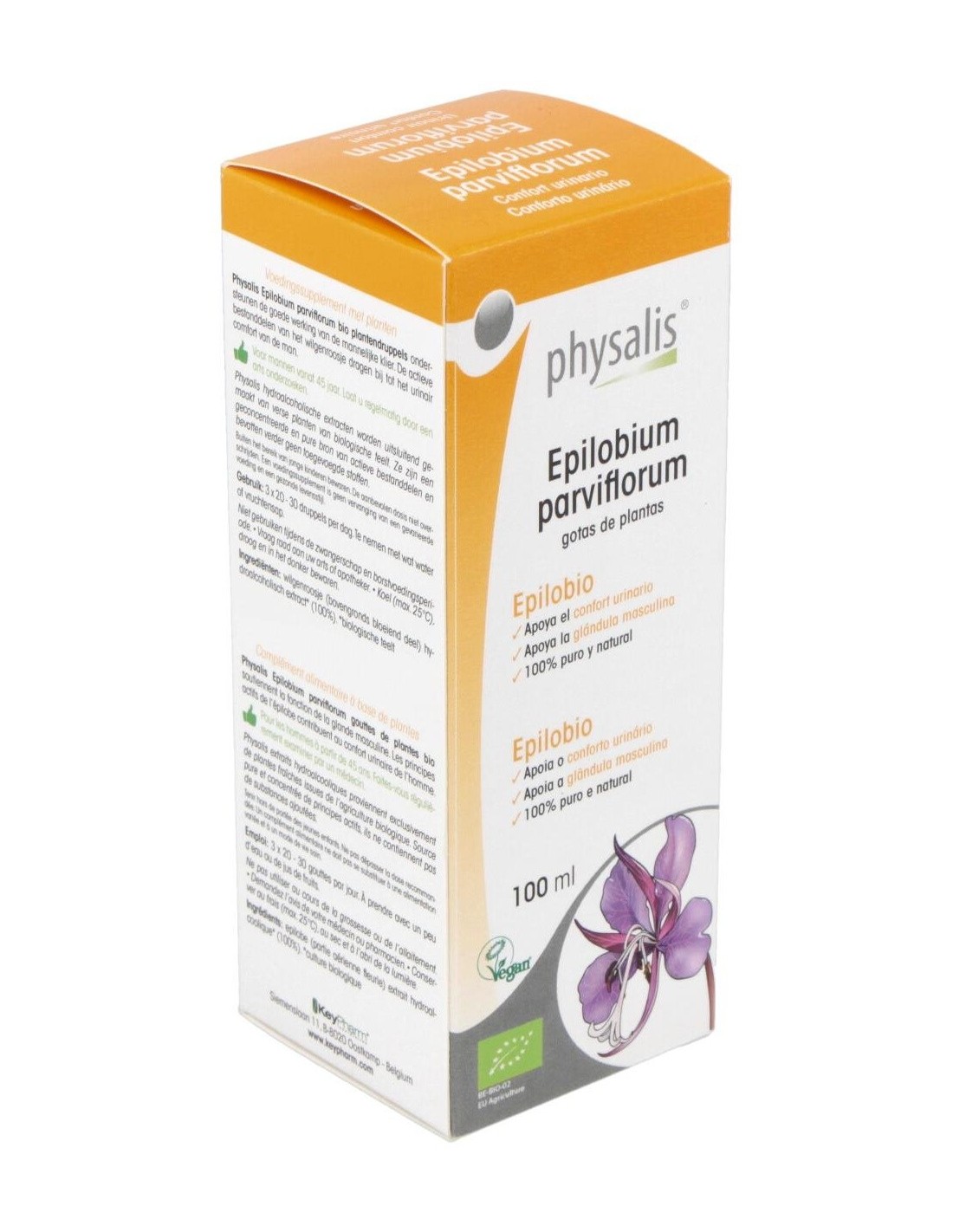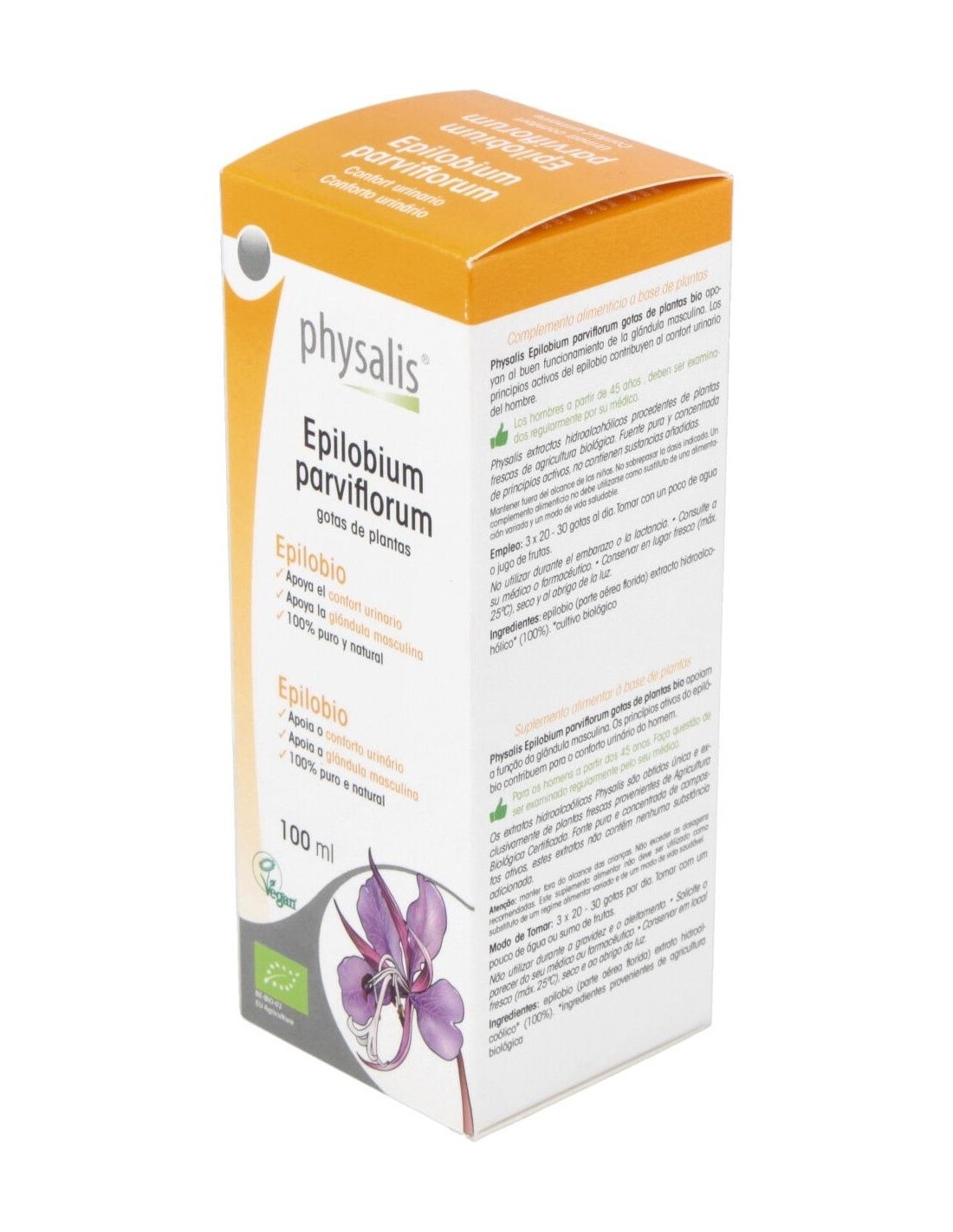 PHYSALISLa Tintura Epilobium Parviflorum (Epilobio) de Physalis es un complemento natural para personas que buscan apoyar el bienestar urinario, elaborado mediante extracción cuidadosa para conservar sus propiedades activas.