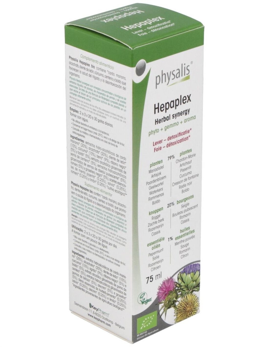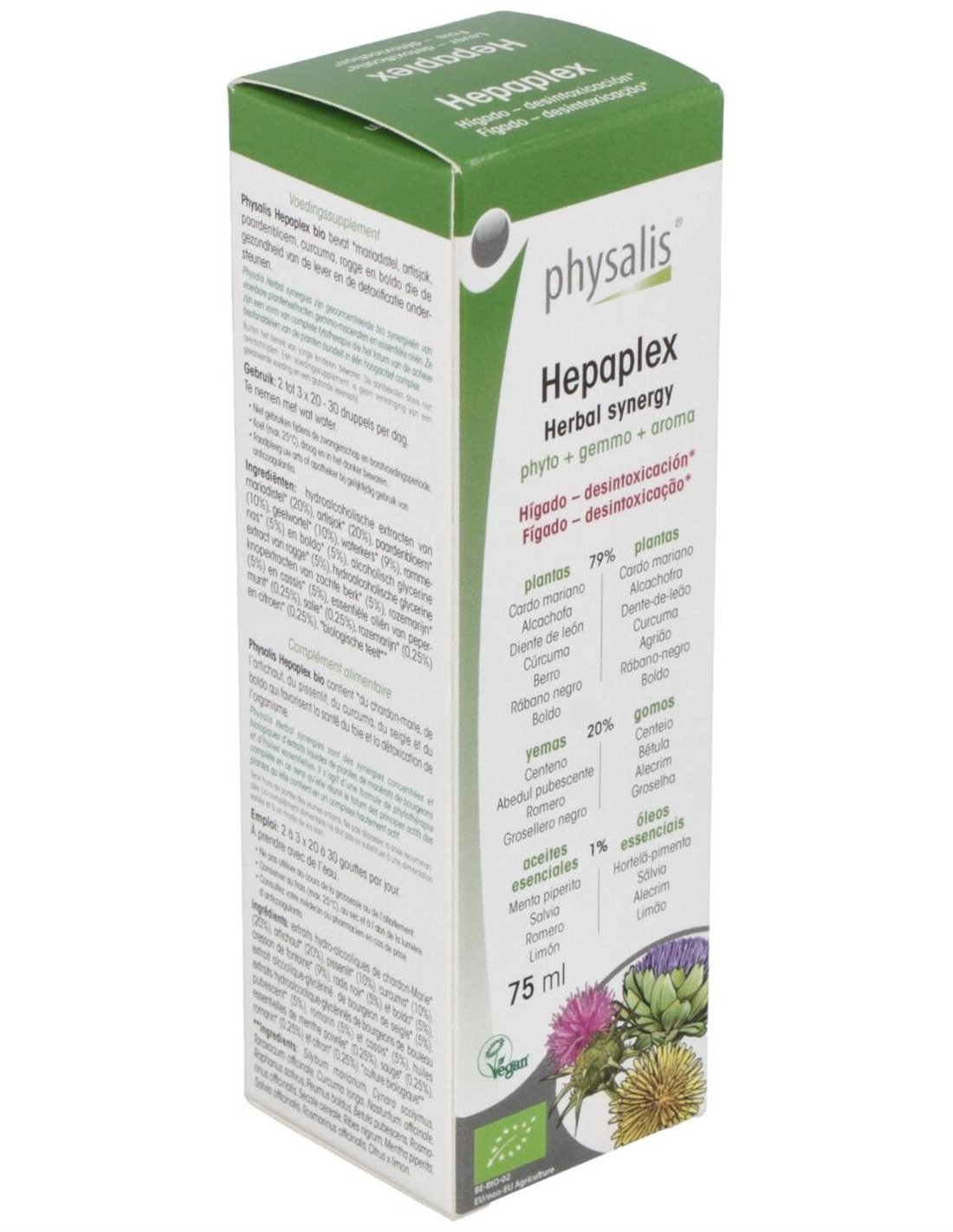 PHYSALISContiene cardo mariano, alcachofa, diente de león, cúrcuma, centeno y boldo que favorecen la salud del hígado y la desintoxicación del organismo. El diente de león apoya la salud de los intestinos debido a su influencia positiva en la flora intestinal (siendo probiótico).