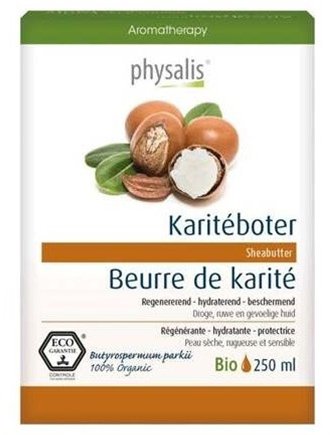 PHYSALISAceite sólido de color crema rico en ácido oleico y esteárico. El ácido esteárico es responsable de la textura espesa y del hecho de que la mantequilla se derrita solo cuando se aplica a la piel.