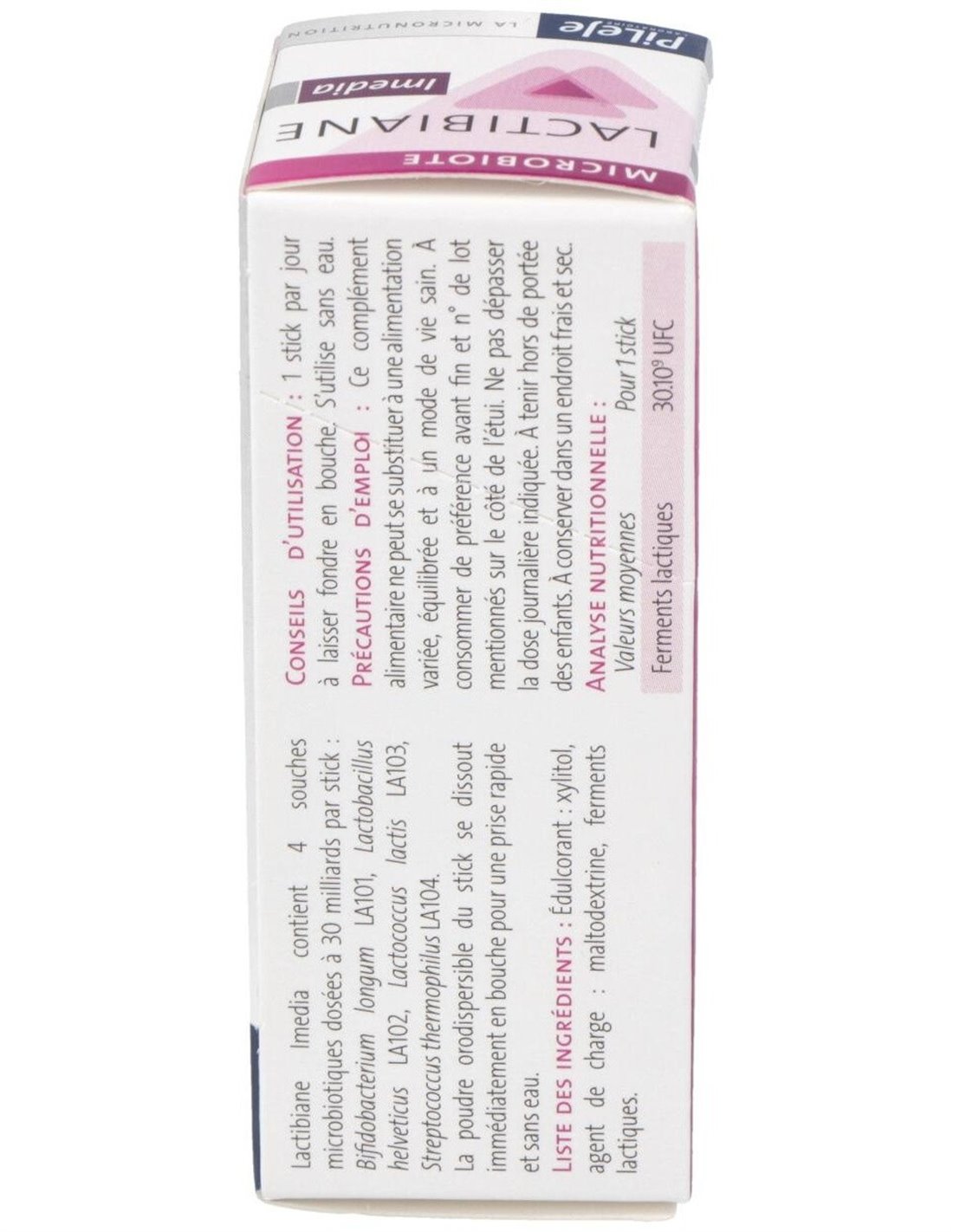 Elaborado con ingredientes seleccionados para preservar la integridad de sus componentes activos, Lactibiane Imedia 4Sticks de Pileje ofrece un formato pensado para quienes valoran la practicidad sin renunciar a la calidad. Su diseño en sticks individuales permite llevarlo fácilmente y consumirlo sin necesidad de agua o mezclas complejas.