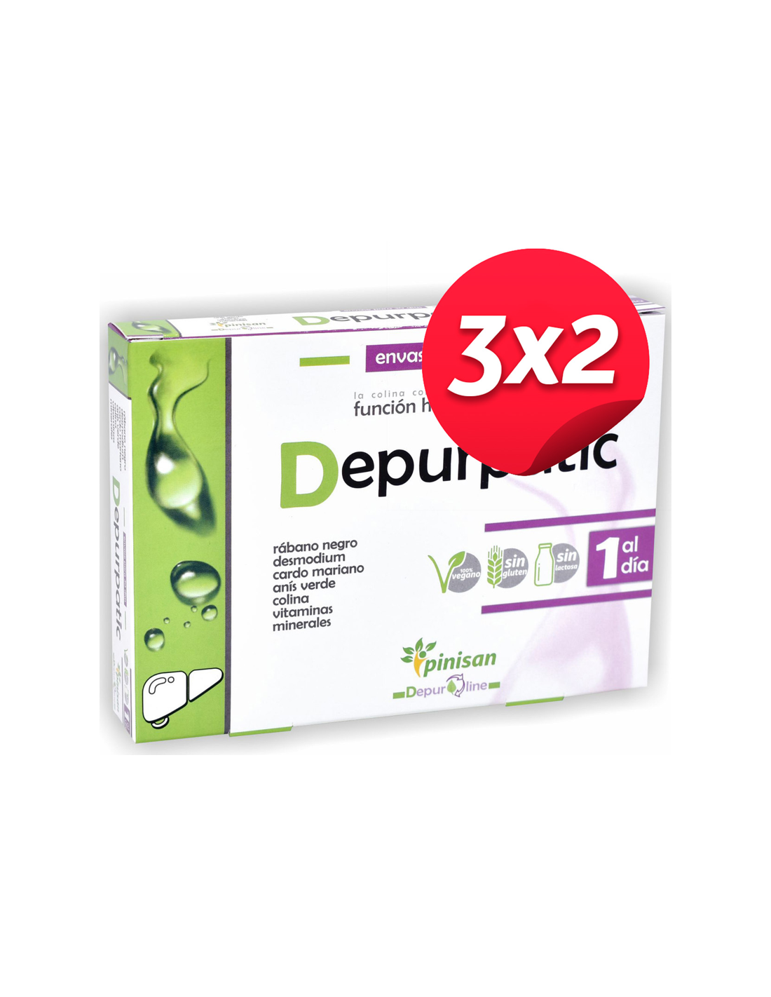Características y beneficios del Pack 3x2 Depurpatic, 30 Caps. de Pinisan