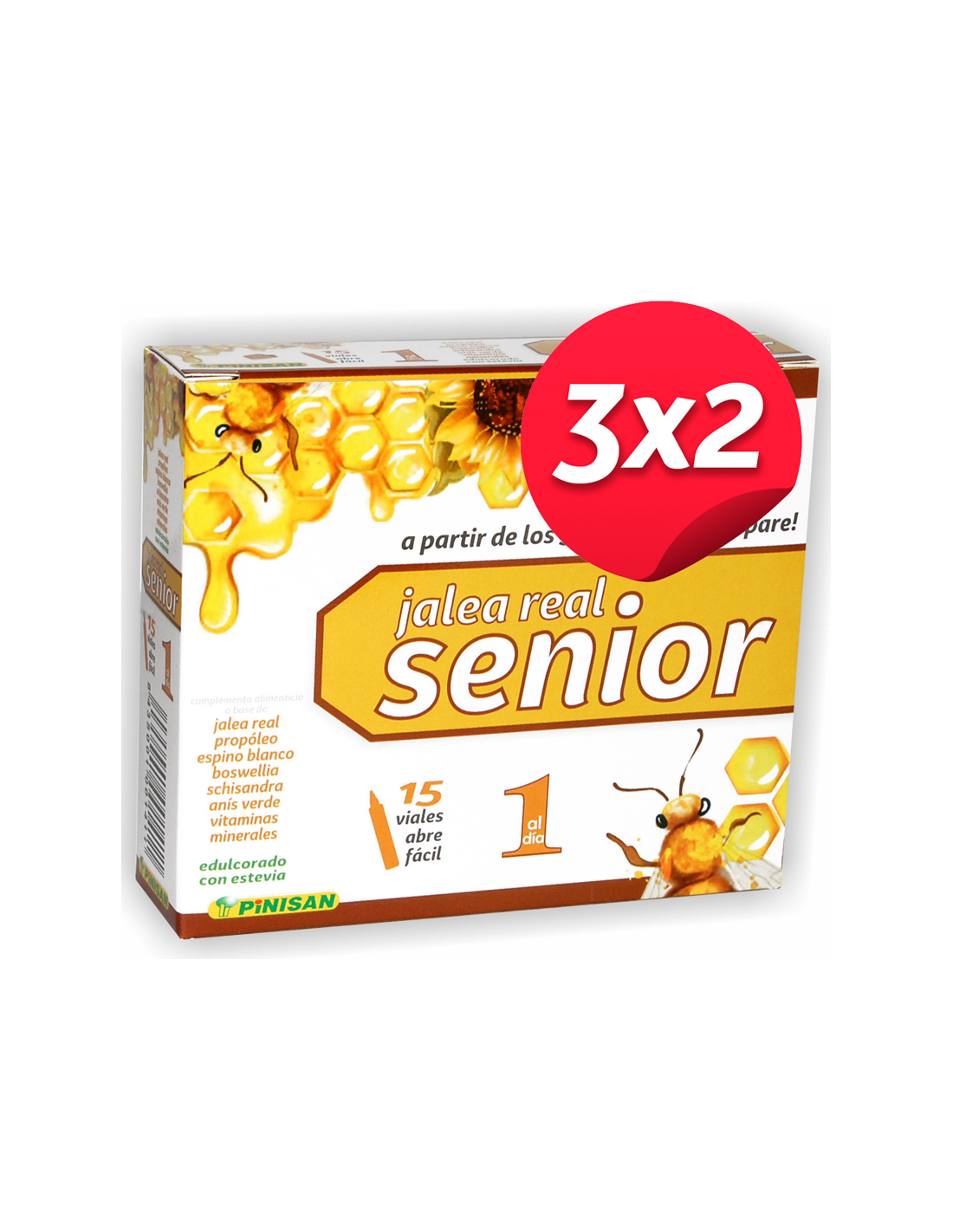 PINISAN PACKDescubre el Poder del Pack 3x2 Jalea Real Senior, 15 Viales de Pinisan