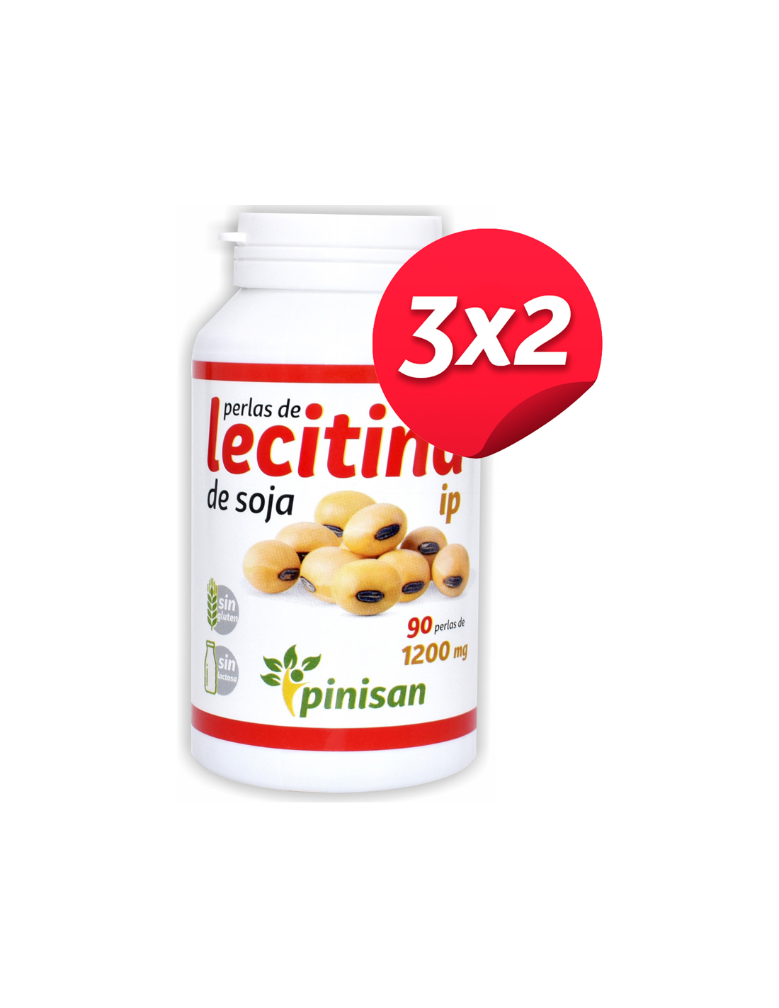 Pack 3x2 Perlas Lecitina Ip 90 Perlas-1200 Mg de Pinisan