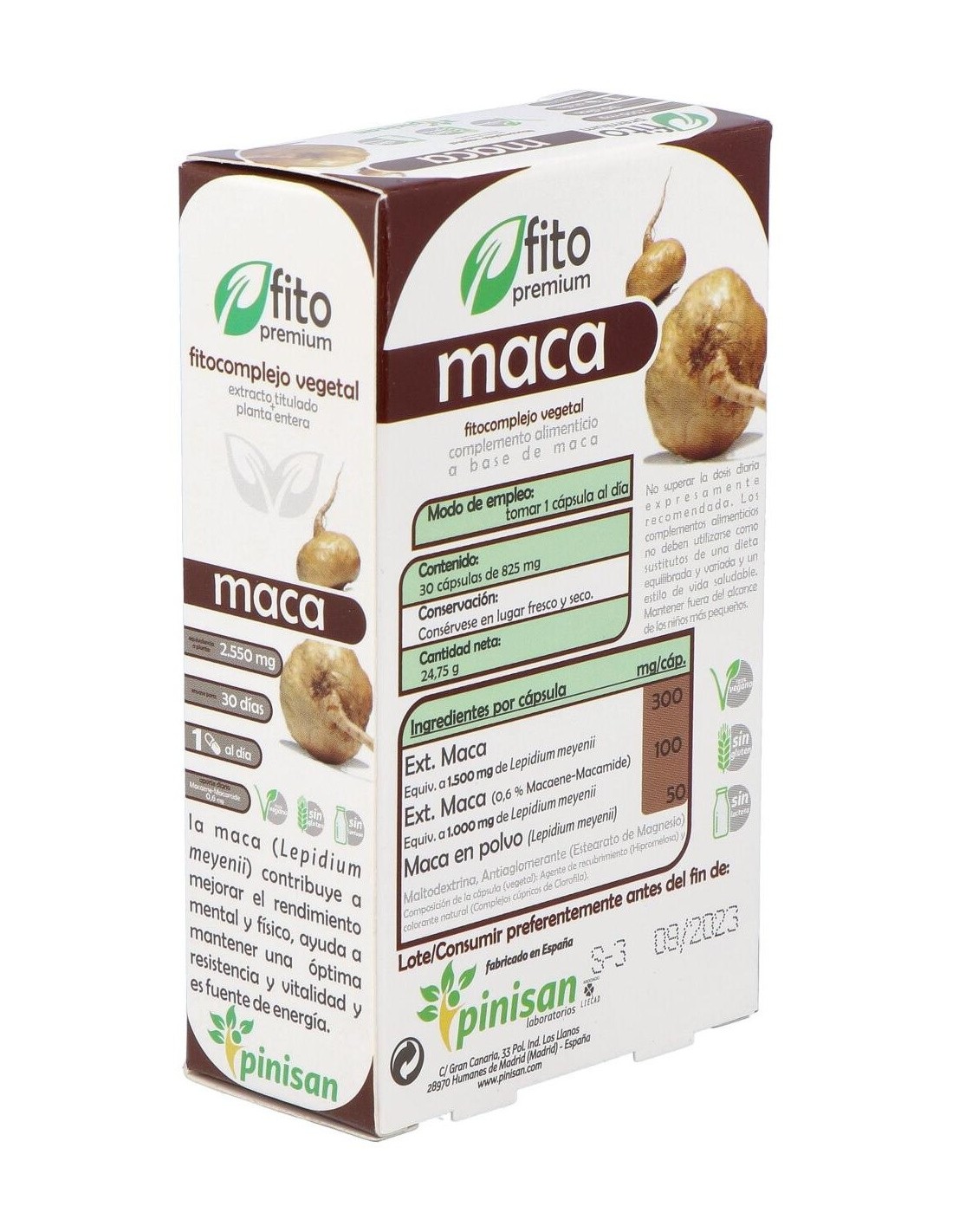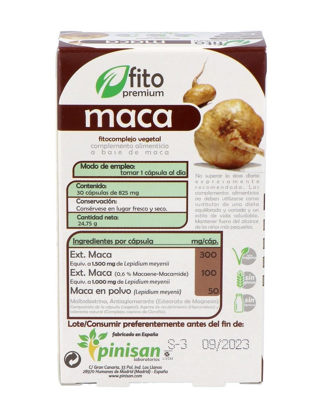 Debido a su larga tradición de uso como alimento, la Maca se considera como muy segura y libre de efectos secundarios e interacciones con fármacos. Composición activa por cápsula: