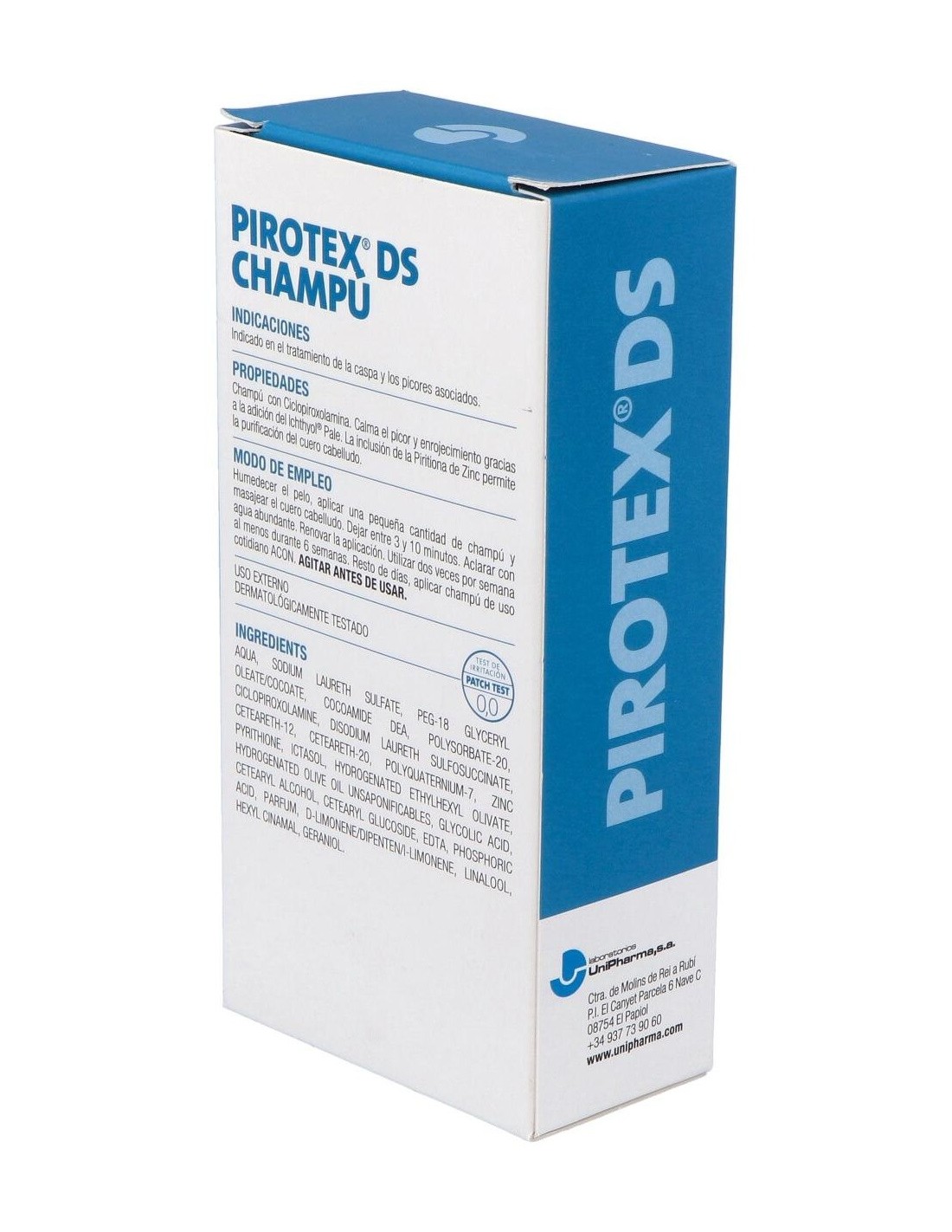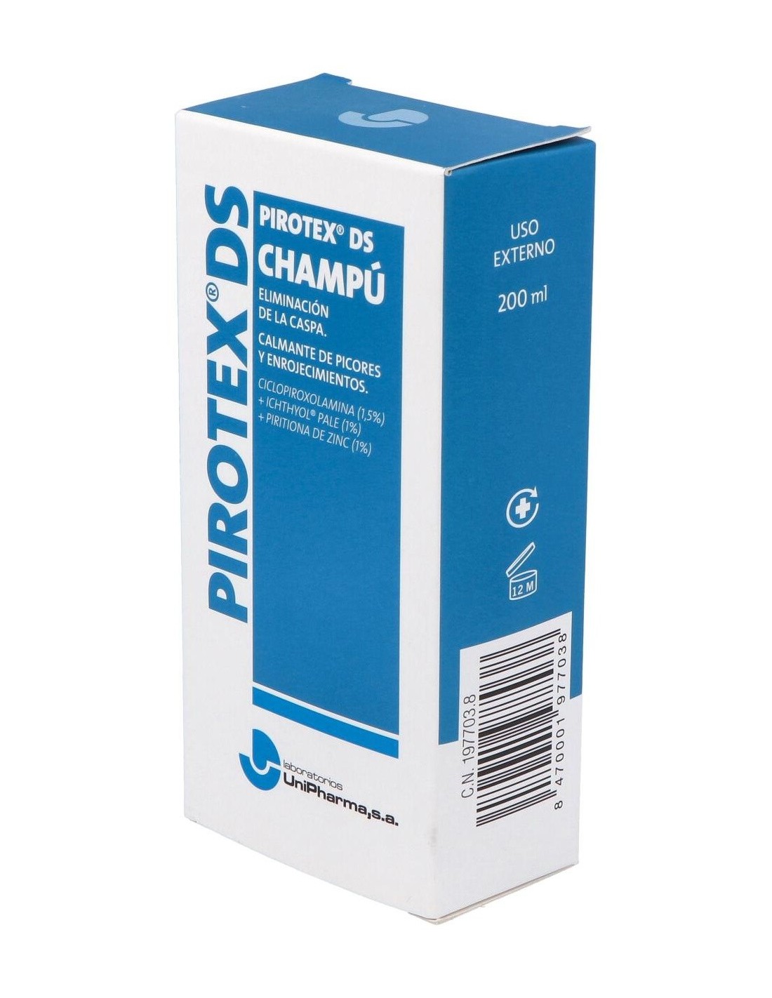 PIROTEX | Unipharma Pirotex® DS champú 200mlSi tu cabello sufre la alteración que la caspa provoca en él debes recurrir a tratamientos efectivos para tratar el problema. Pirotex te propone una forma rápida y sencilla de acabar con la caspa de forma visible.