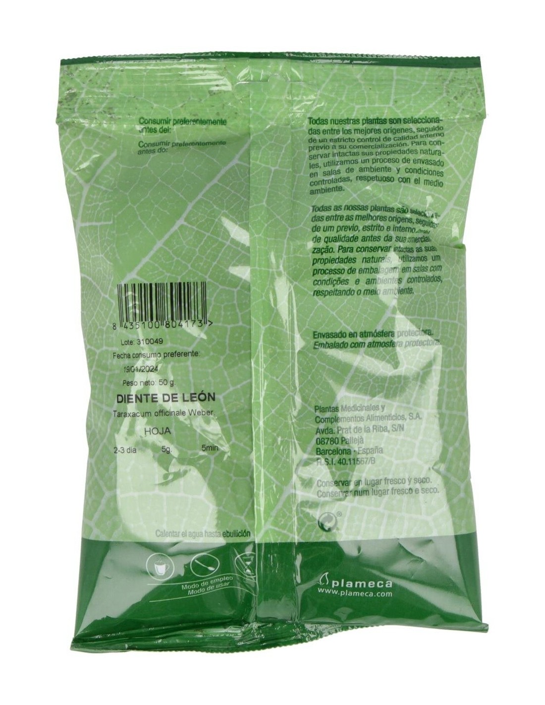 Diente De Leon Hojas Trituradas Bolsa 50Gr. de Plameca