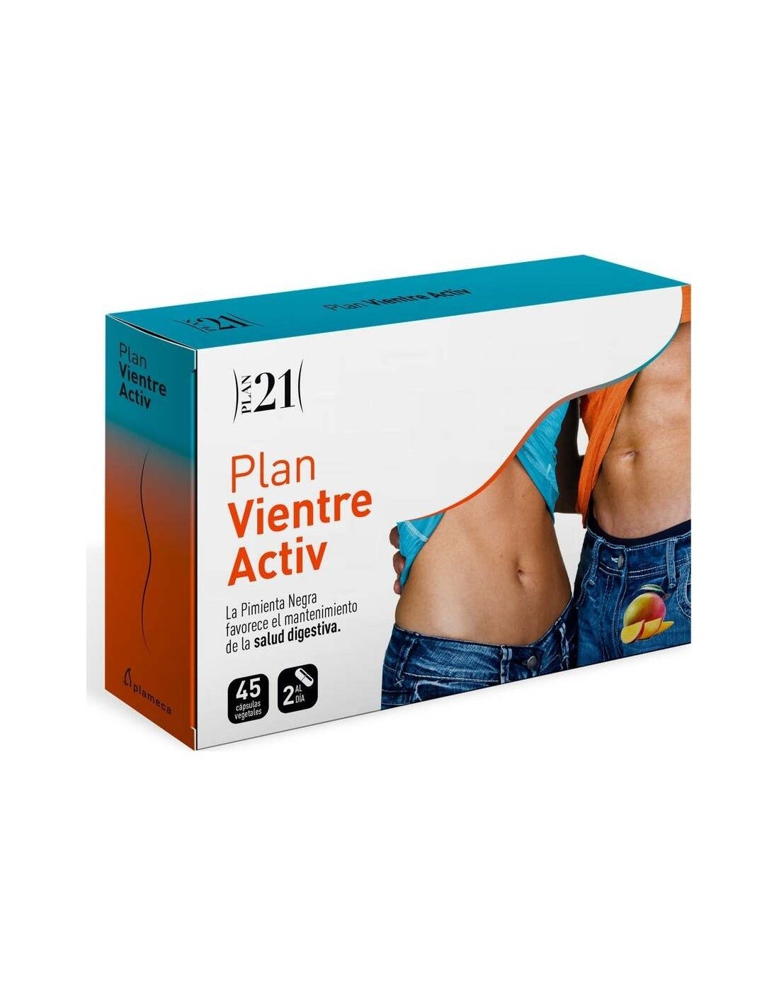 Plan Vientre Activ es el producto de la línea Plan 21 (control de peso) con una acción específica en la reducción del perímetro de cintura y de la grasa abdominal, combinado con un potenciador de la absorción de los principios activos para conseguir un efecto más potente.Composición activa por 2 cápsulas: