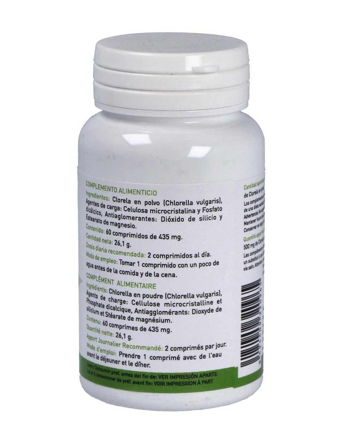 - Cada comprimido contiene 435 mg de clorela, un alga verde conocida por su perfil nutricional.
