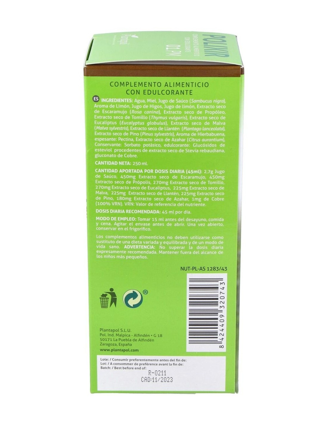 PLANTAPOLElixir de esencias y plantas a base de jugos concentrados de sabor muy agradable. Se utiliza para tratamiento en problemas respiratorios: bronquitis, gripe, catarro, tos, asma, faringitis, ronquera, etc.