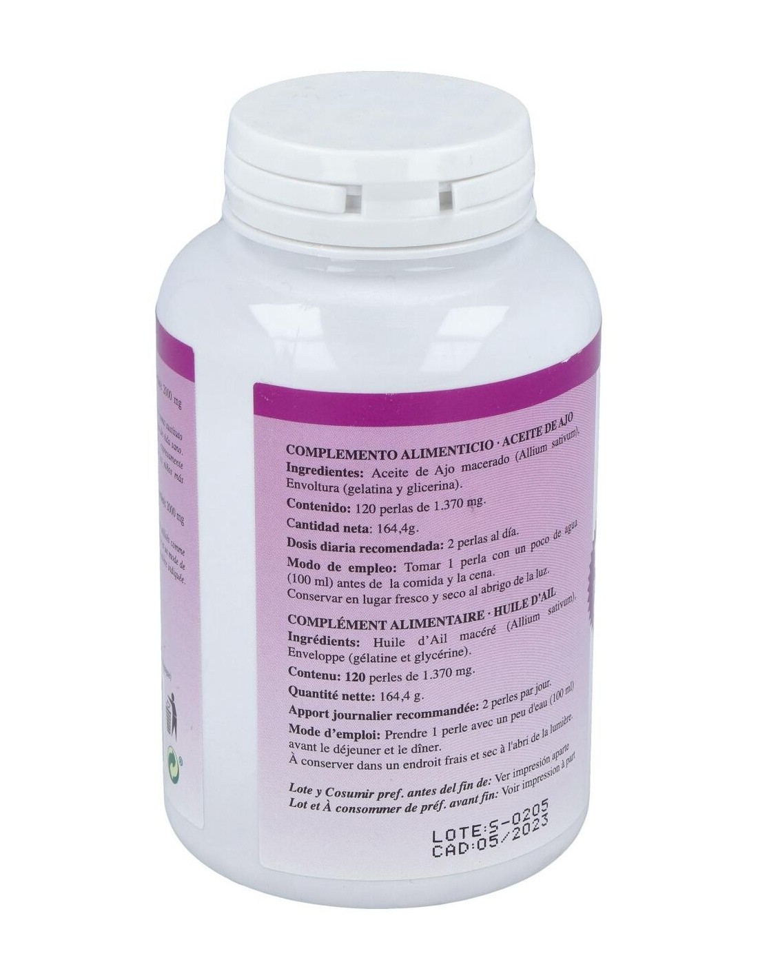 - Cada perla contiene 1.400 mg de aceite de ajo, proporcionando una cantidad constante y controlada en cada dosis.