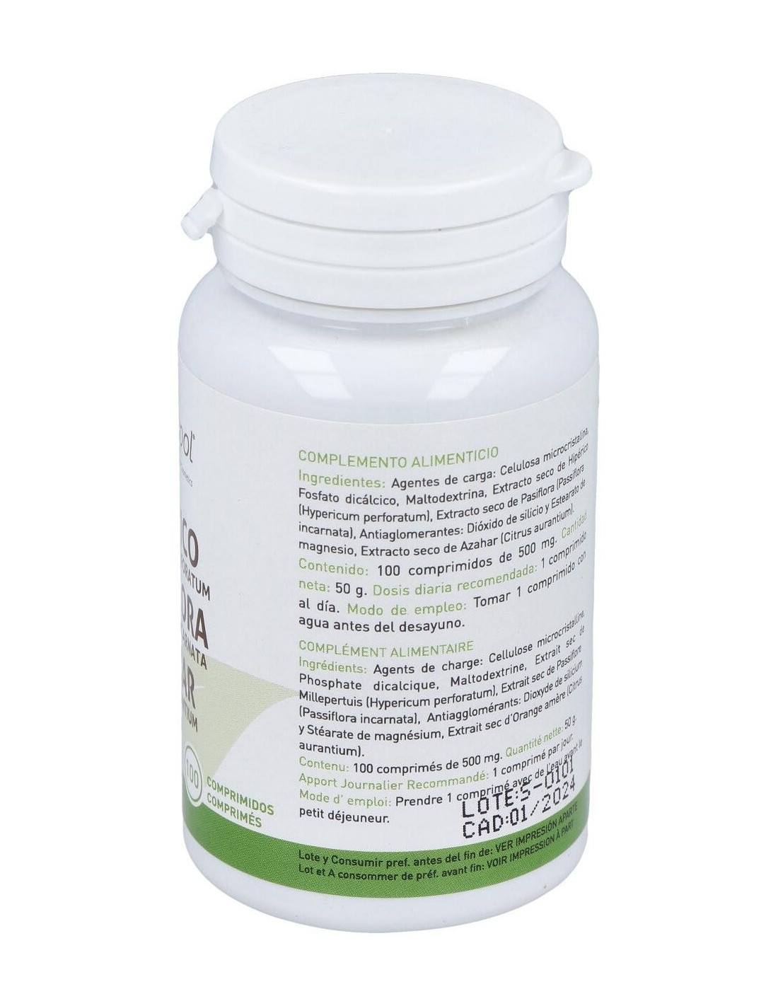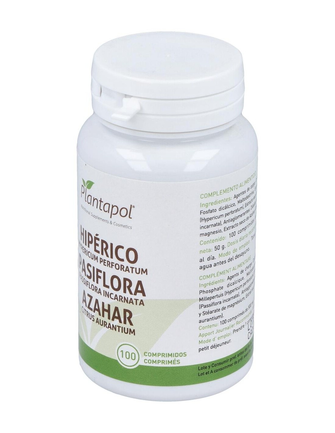 Hipérico, Pasiflora, Azahar (100 Comprimidos 500 mg) de Plantapol ofrece una alternativa basada en plantas para quienes valoran productos con formulaciones tradicionales y prácticas.