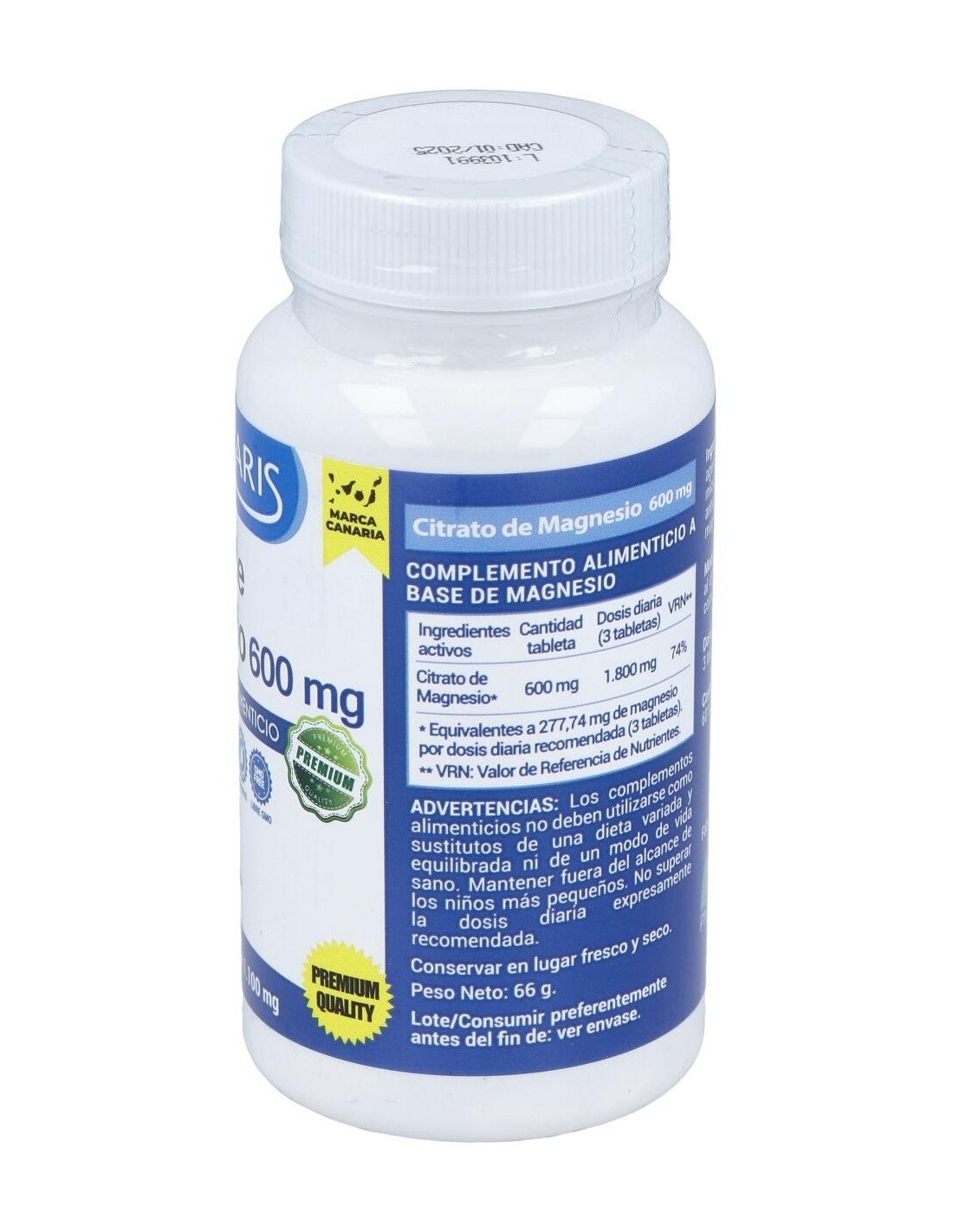 - Cada comprimido contiene 600 mg de magnesio en forma de citrato, una presentación que facilita su absorción.