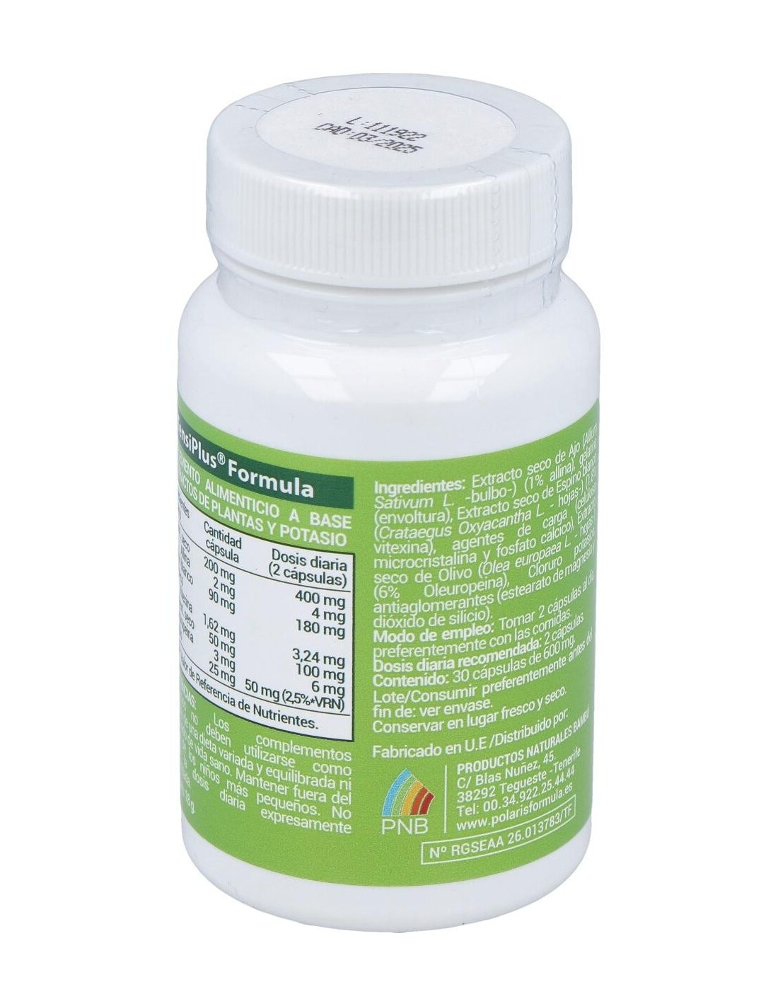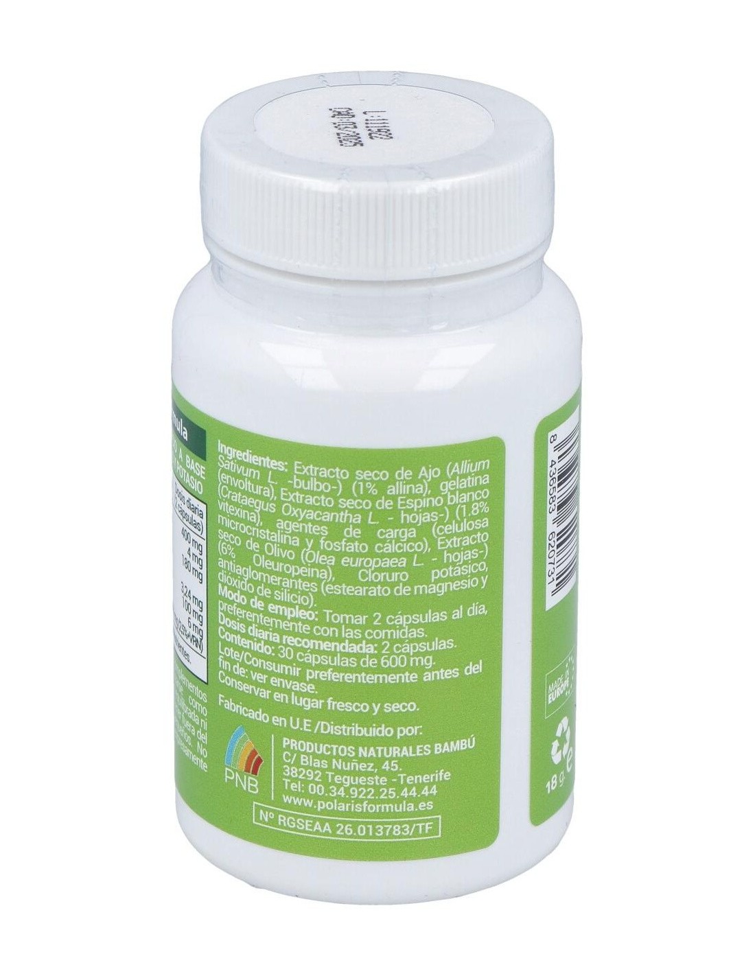 POLARISComplemento alimenticio formulado a base de extracto de ajo, espino blanco, olivo y potasio. Bote de 30 cápsulas de 600mg.
