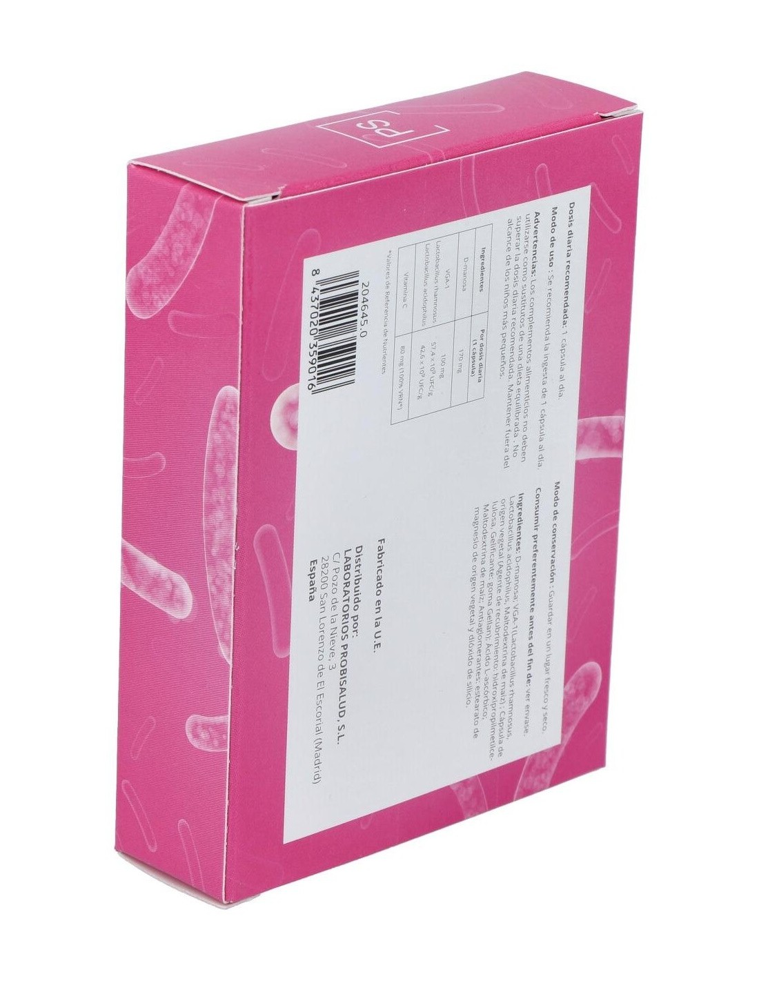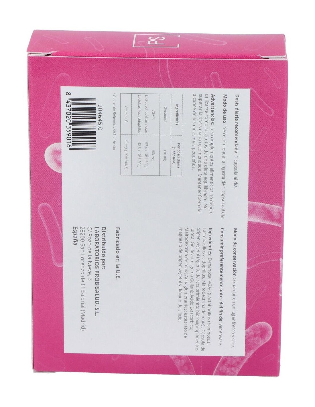 NUVGA-1 (mezcla probiótica), D-manosa, vitamina C, cápsulas vegetales.