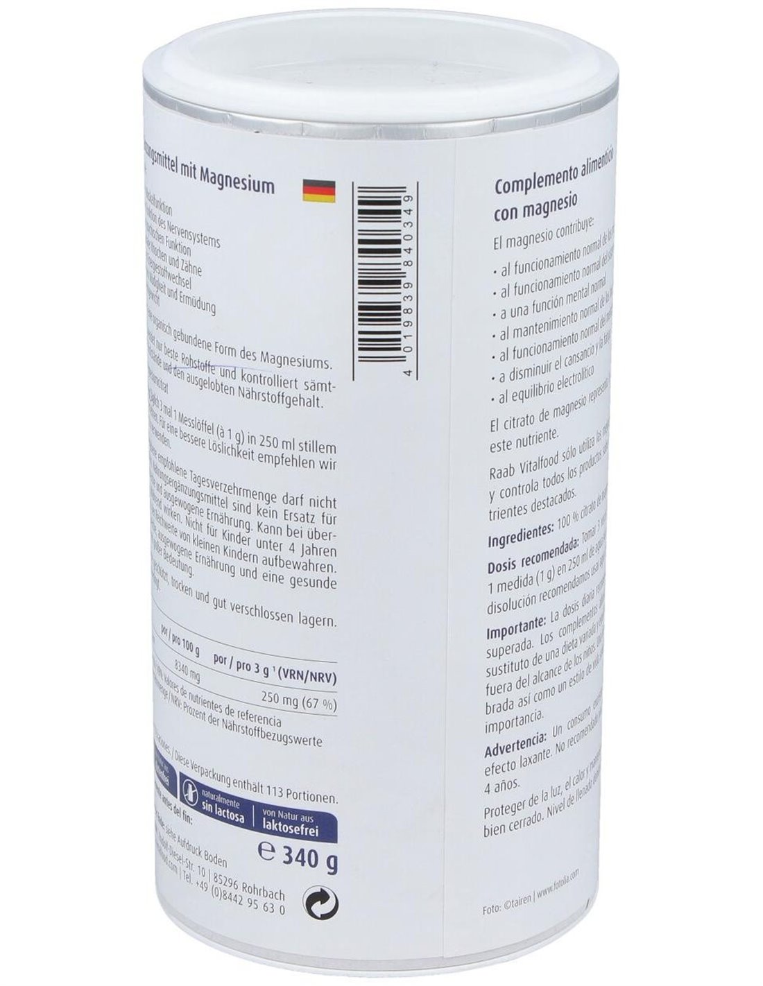 Magnesio Citrato polvo, bote 340g de Raab Vitalfood