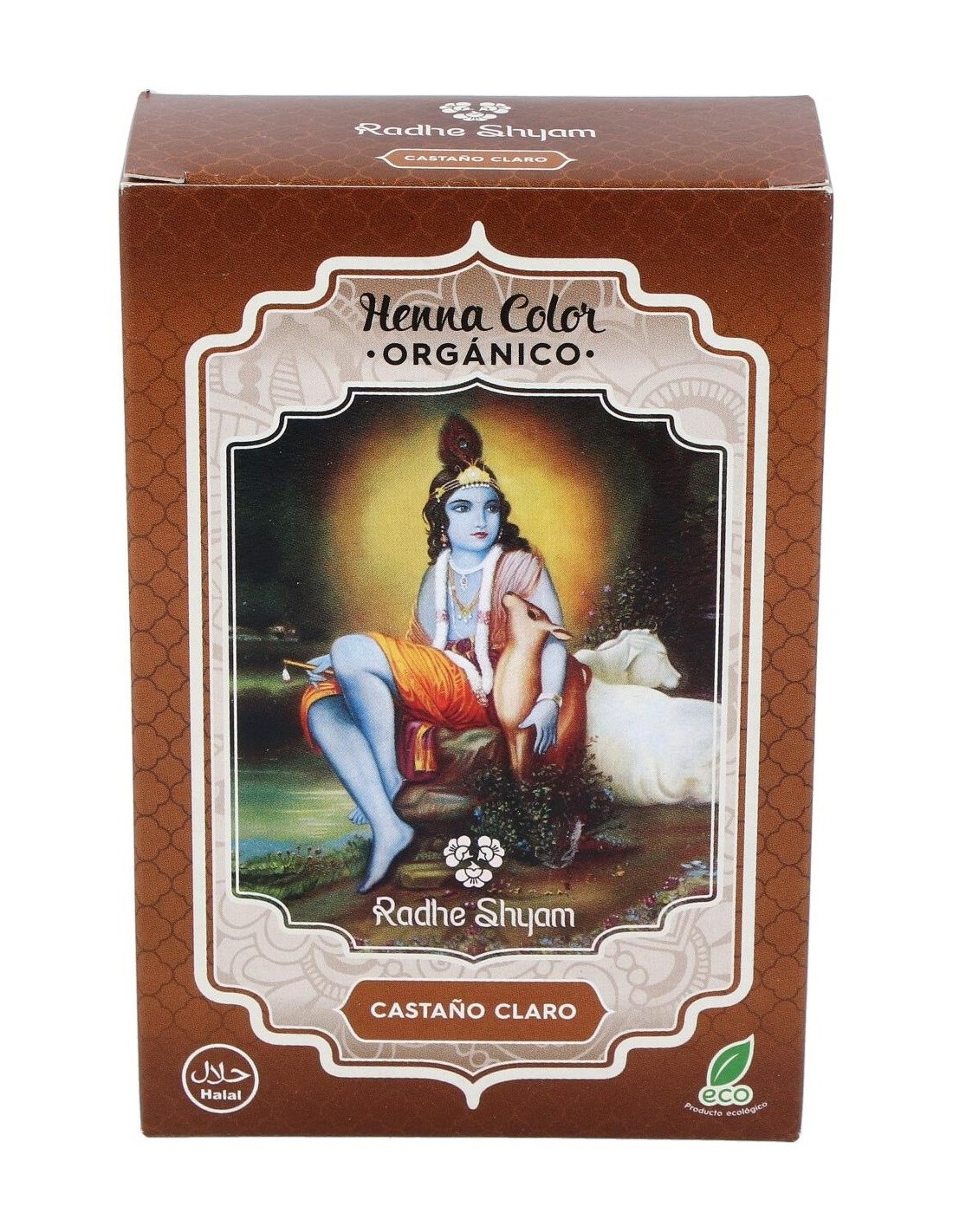 RADHE SHYAMTinte Natural para el pelo a base de plantas, que cuida y nutre la piel, del que se obtiene un color marrón clarito. Apto para veganos.