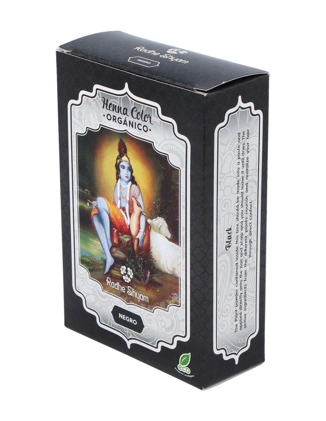 Radhe Shyam Henna color negro es un exclusivo tinte natural, sin químicos en su composición, que ofrece todas las propiedades de la naturaleza para colorear tu cabello. Cubre las raíces grises, refuerza la fibra y protege el cuero cabelludo.