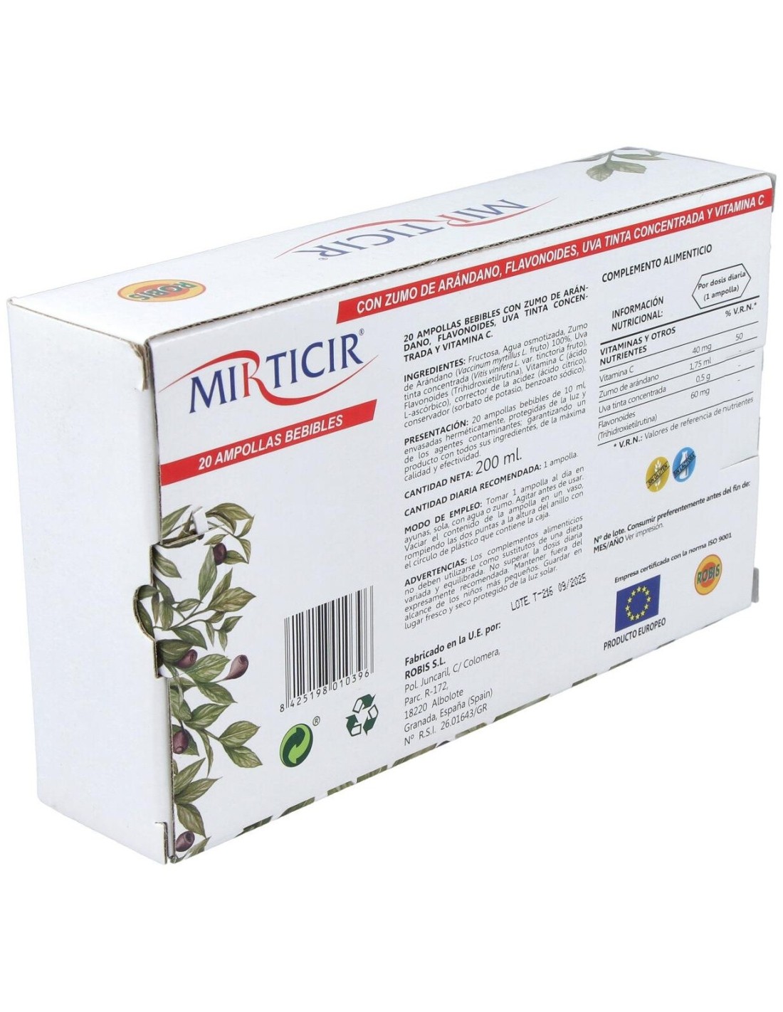 ROBISEl Mirticir 20Amp de Robis es un suplemento dirigido a adultos que busca apoyar el bienestar emocional, formulado con ingredientes seleccionados para contribuir a la regulación del estado de ánimo.