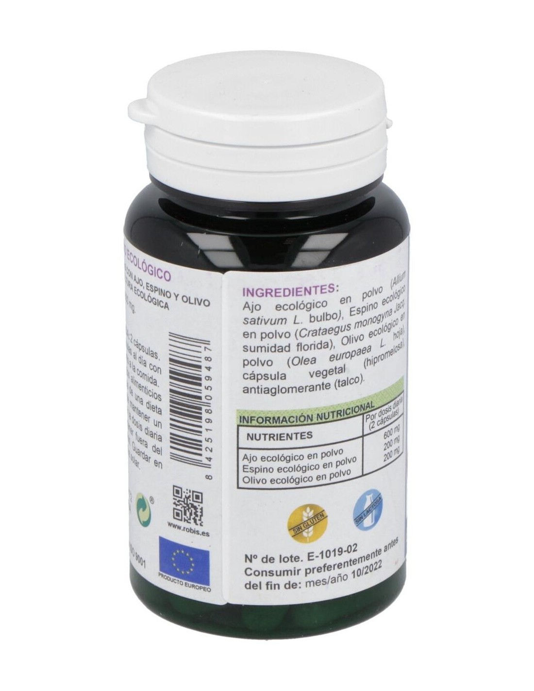 El Ajo-Espino-Olivo 60Cap. Eco de Robis ofrece una combinación de extractos vegetales que puede complementar hábitos saludables de alimentación y bienestar.