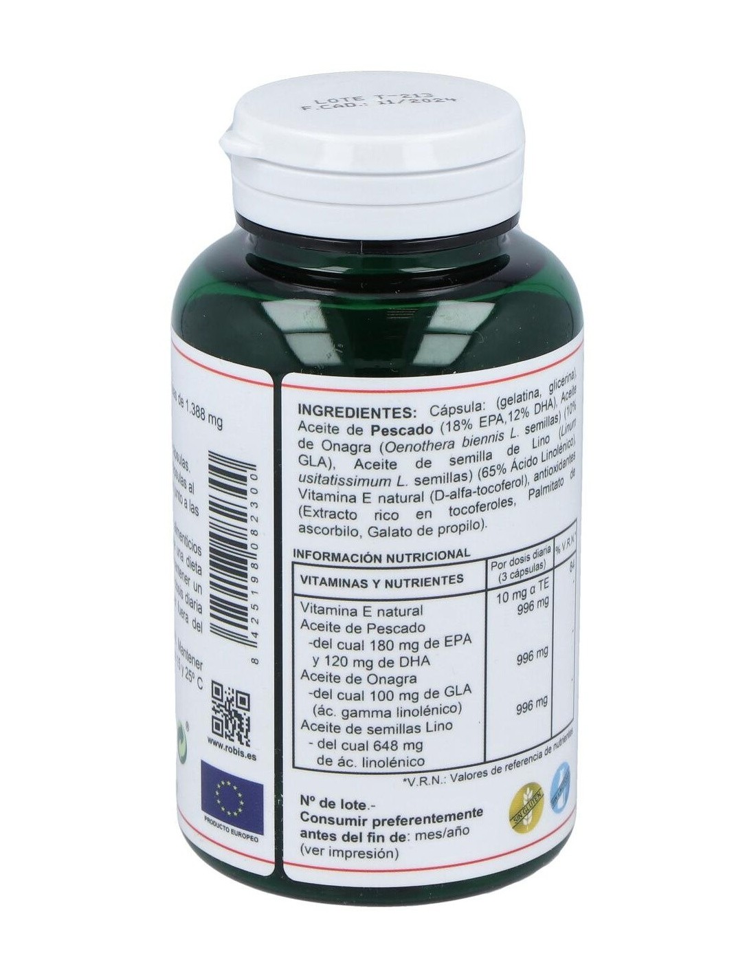Multi Omega 3-6-9 60Cap. de Robis es un suplemento diseñado para personas que buscan complementar su dieta con ácidos grasos esenciales. Es adecuado para quienes desean apoyar su bienestar general mediante una fórmula equilibrada que integra diferentes tipos de omega.