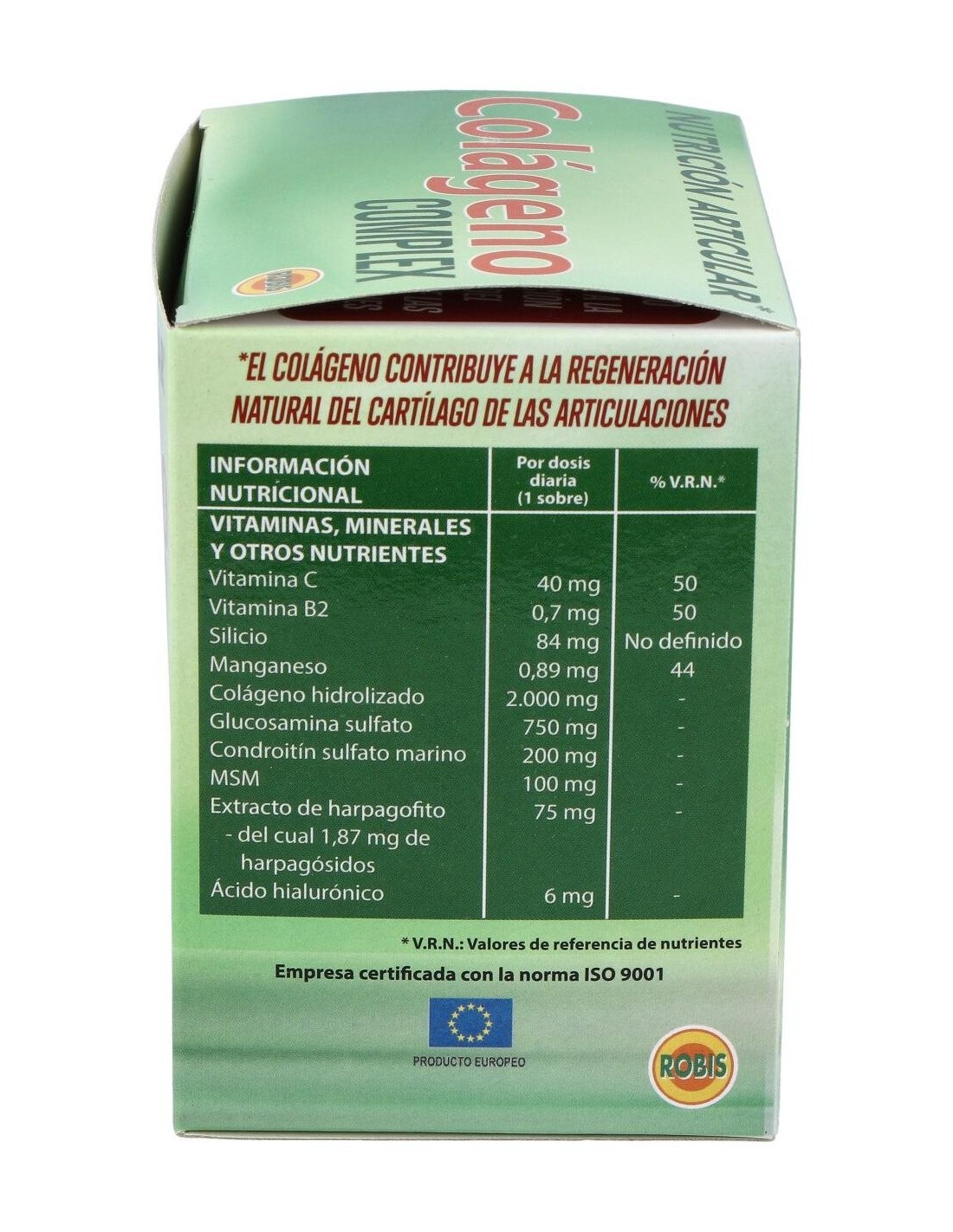 ROBISEl Colageno Complex 20Sbrs. de Robis es un suplemento nutricional dirigido a personas que buscan apoyar la salud articular y de la piel, formulado con colágeno y nutrientes clave para favorecer su mantenimiento.