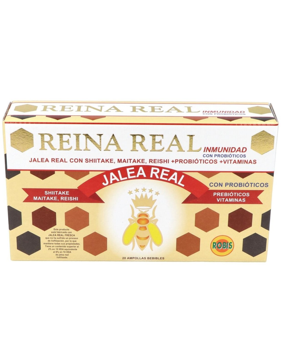 ROBISReina Real Inmunidad 20Amp. de Robis es un suplemento dirigido a personas que buscan apoyar su sistema inmunológico, formulado con ingredientes naturales que contribuyen a fortalecer las defensas del cuerpo.