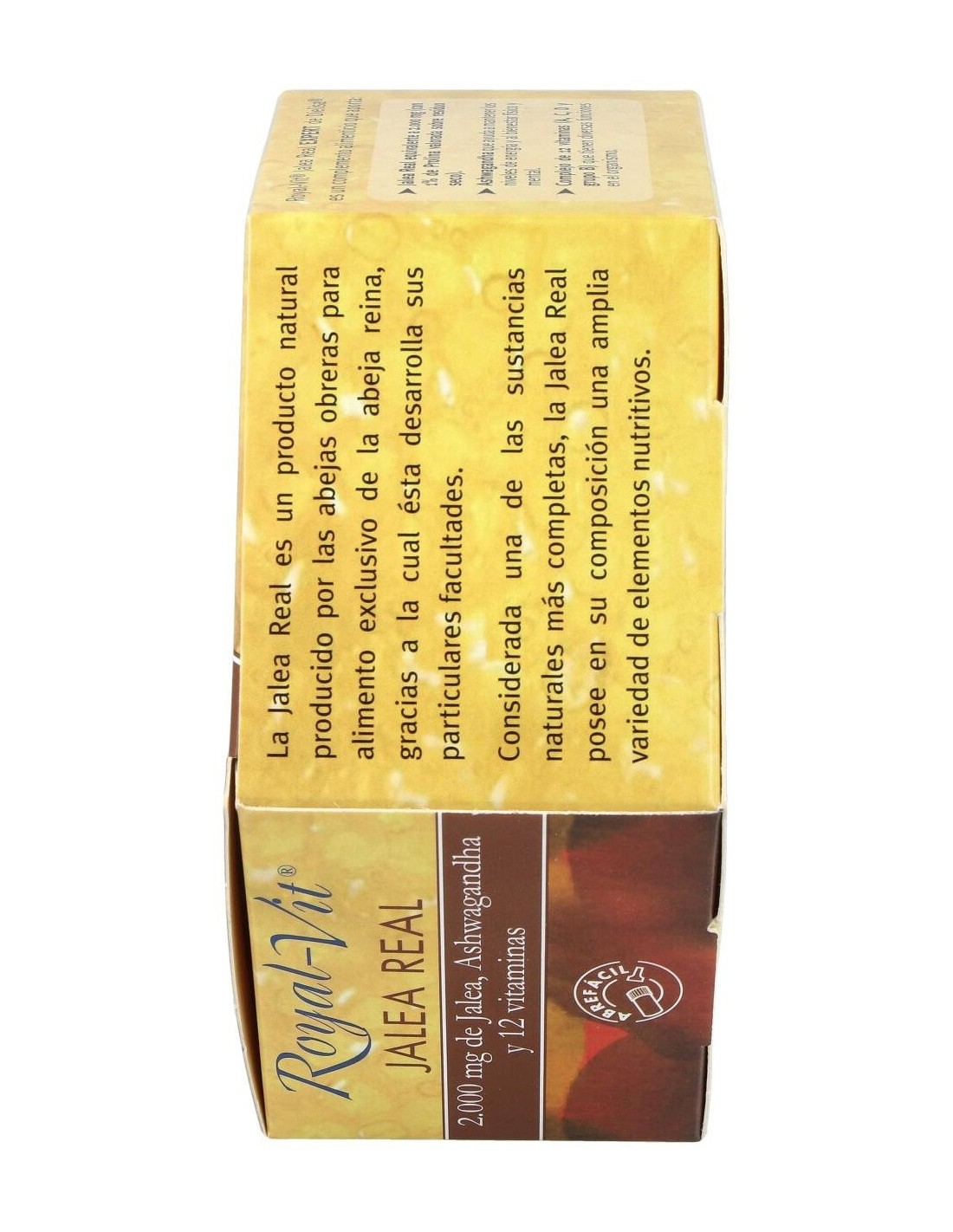 Complemento alimenticio a base de jalea real. La jalea real ayuda a reducir el colesterol, a activar la circulación sanguínea y mejorar las funciones digestivas. Elaborado con ashwagandha y 12 vitaminas. La ashwagandha se usa comúnmente para tratar el estrés, ayuda a reducir la inflamación, a disminuir la presión arterial y fortalecer el sistema inmunológico.