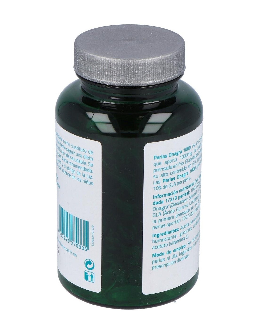 - Perlas con aceite de onagra que contribuyen a mantener la salud de la piel y el equilibrio general del organismo.