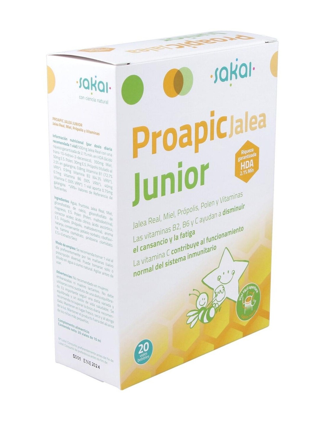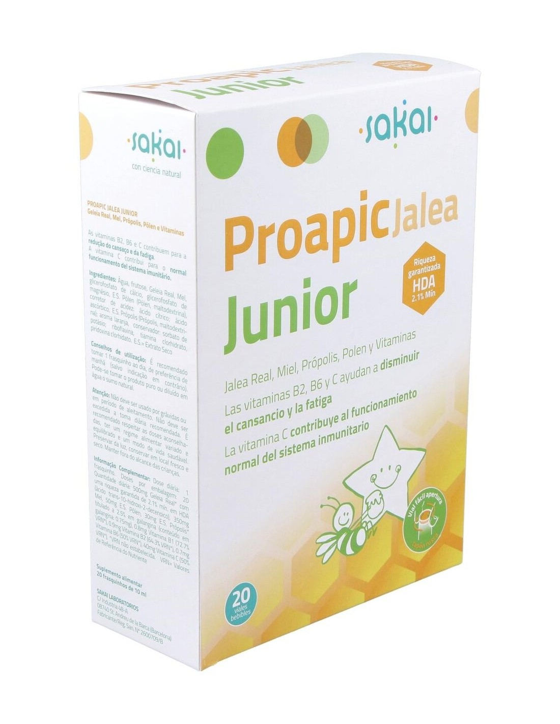 SAKAISuplemento de jalea real con vitaminas y minerales, especialmente formulado para el refuerzo de las defensas de los niños. Suplemento de jalea real con vitaminas y minerales, especialmente formulado para el refuerzo de las defensas de los niños.