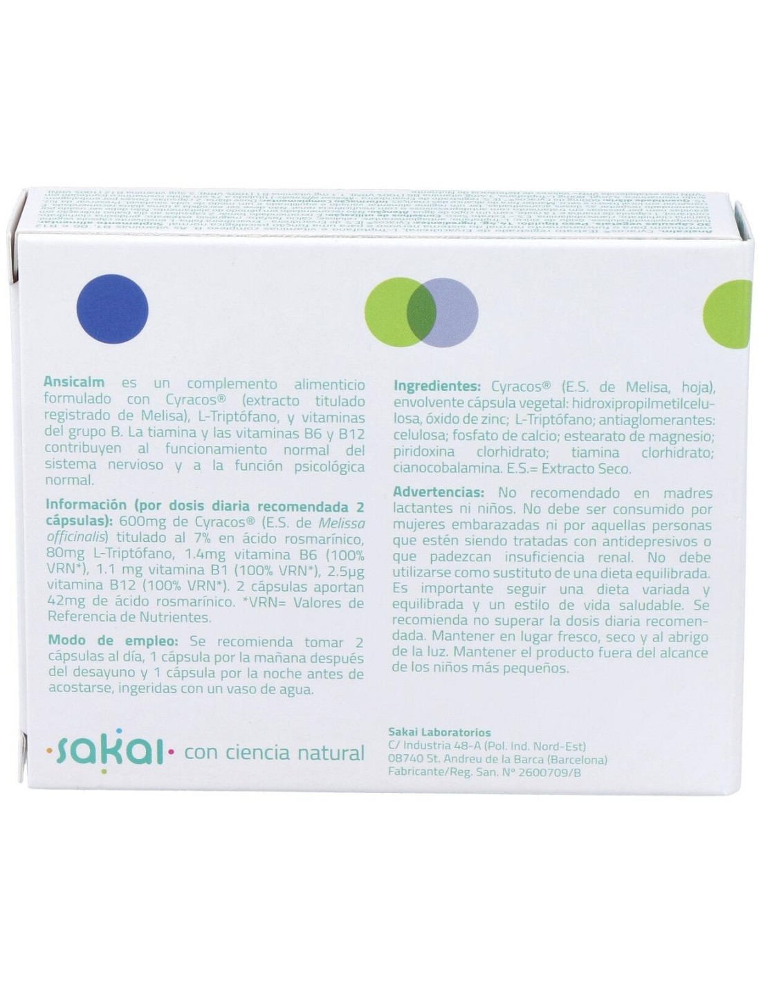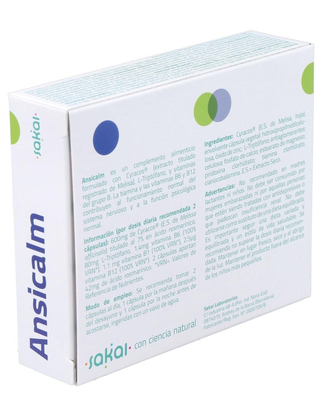 Ansicalm 30Cap. de Sakai es un suplemento diseñado para personas que buscan apoyar su bienestar emocional y equilibrio diario. Su formulación está pensada para quienes desean complementar su rutina con ingredientes que contribuyen a mantener un estado de calma natural.