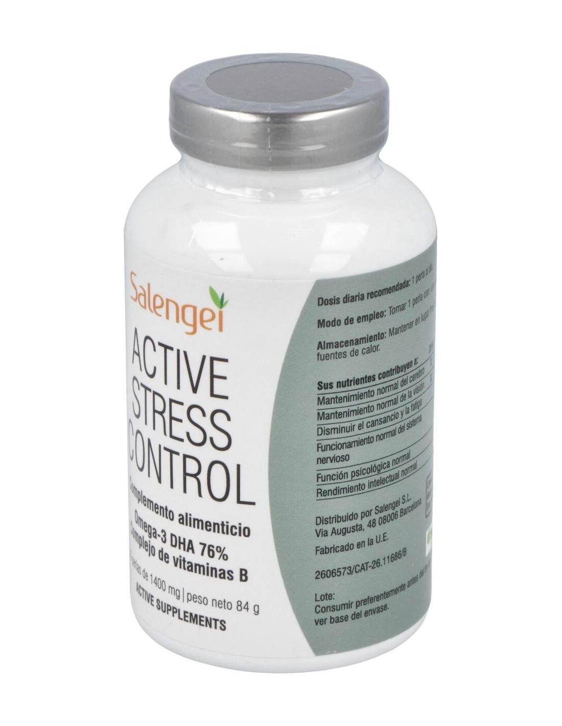 SALENGEIActive Stress Control está indicado para aliviar los síntomas asociados al estrés, el cansancio y la fatiga.Contiene ácidos grasos Omega-3 procedentes