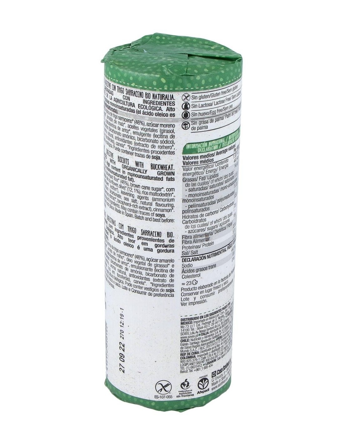 SANTIVERISaludables galletas veganas elaboradas a base de trigo sarraceno, extracto de romero y delicioso sabor a canela, procedentes de la agricultura ecológica, que son ideales para tomar en cualquier momento del día. Aporta una gran fuente de fibras, que ayudan a promover el tránsito intestinal.