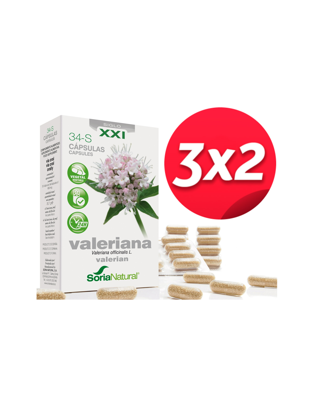 SORIA NATURAL 3X2La valeriana (Valeriana offinacinalis) es una planta utilizada tradicionalmente por sus efectos relajantes y tranquilizantes. La parte utilizada para extraer los compuestos activos, entre los que destacan los aceites esenciales, es la raíz. Uno de los principales constituyentes de este aceite esencial es el ácido valerénico, al que se le atribuyen una parte importante de los efectos relajantes de la valeriana.