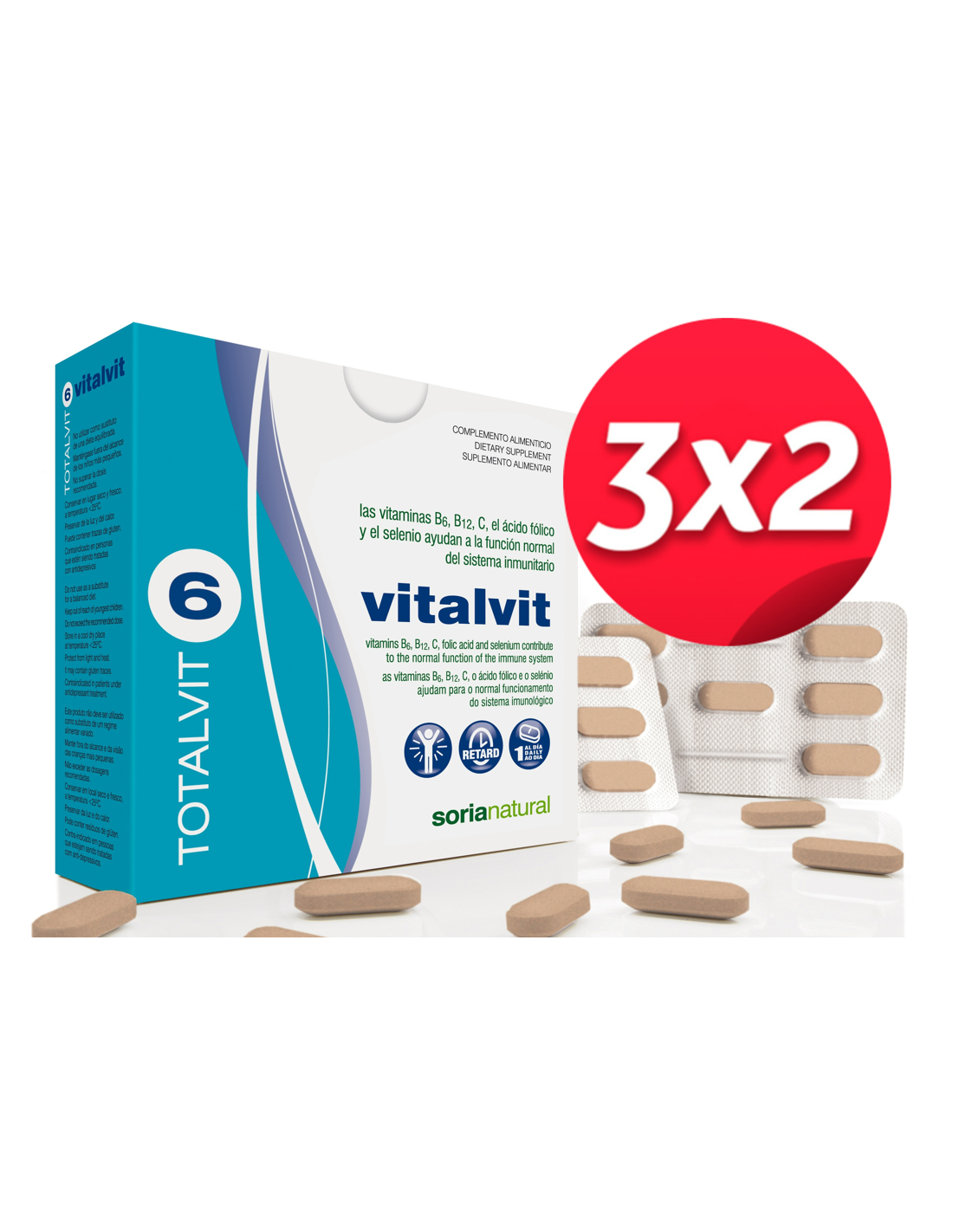- Incluye tres envases de Totalvit 6 Vitalvit, cada uno con 28 comprimidos, facilitando una suplementación continua.