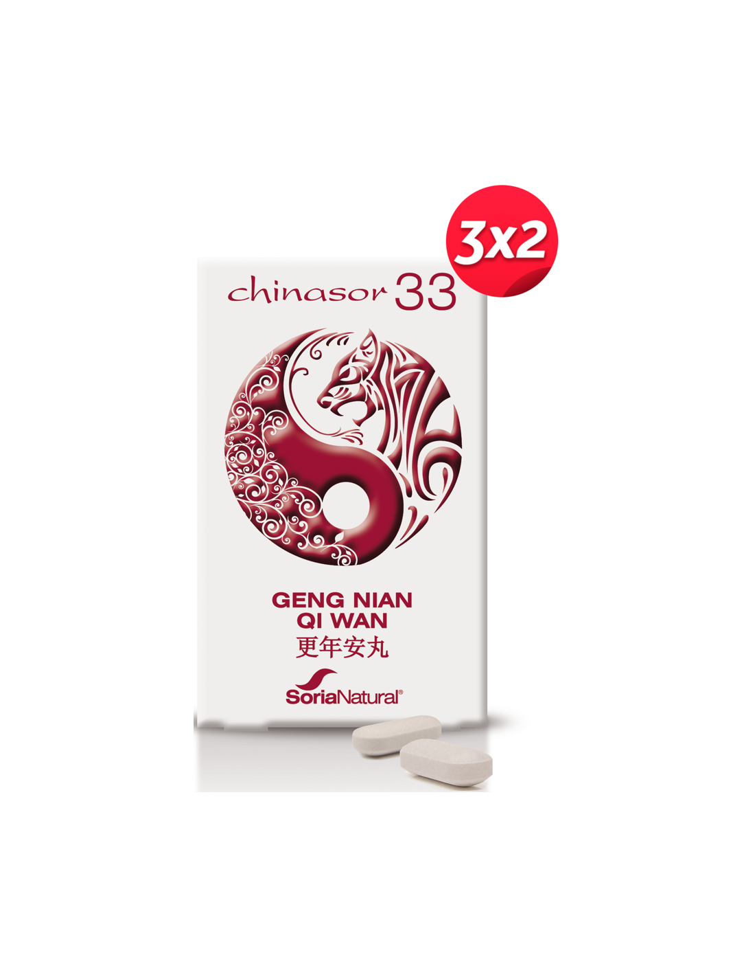 SORIA NATURAL 3X2El Pack 3X2 Chinasor 33 Geng Nian Qi Wan de Soria Natural es un complemento natural para personas que buscan apoyo en su bienestar diario, formulado con ingredientes tradicionales que contribuyen al equilibrio corporal.