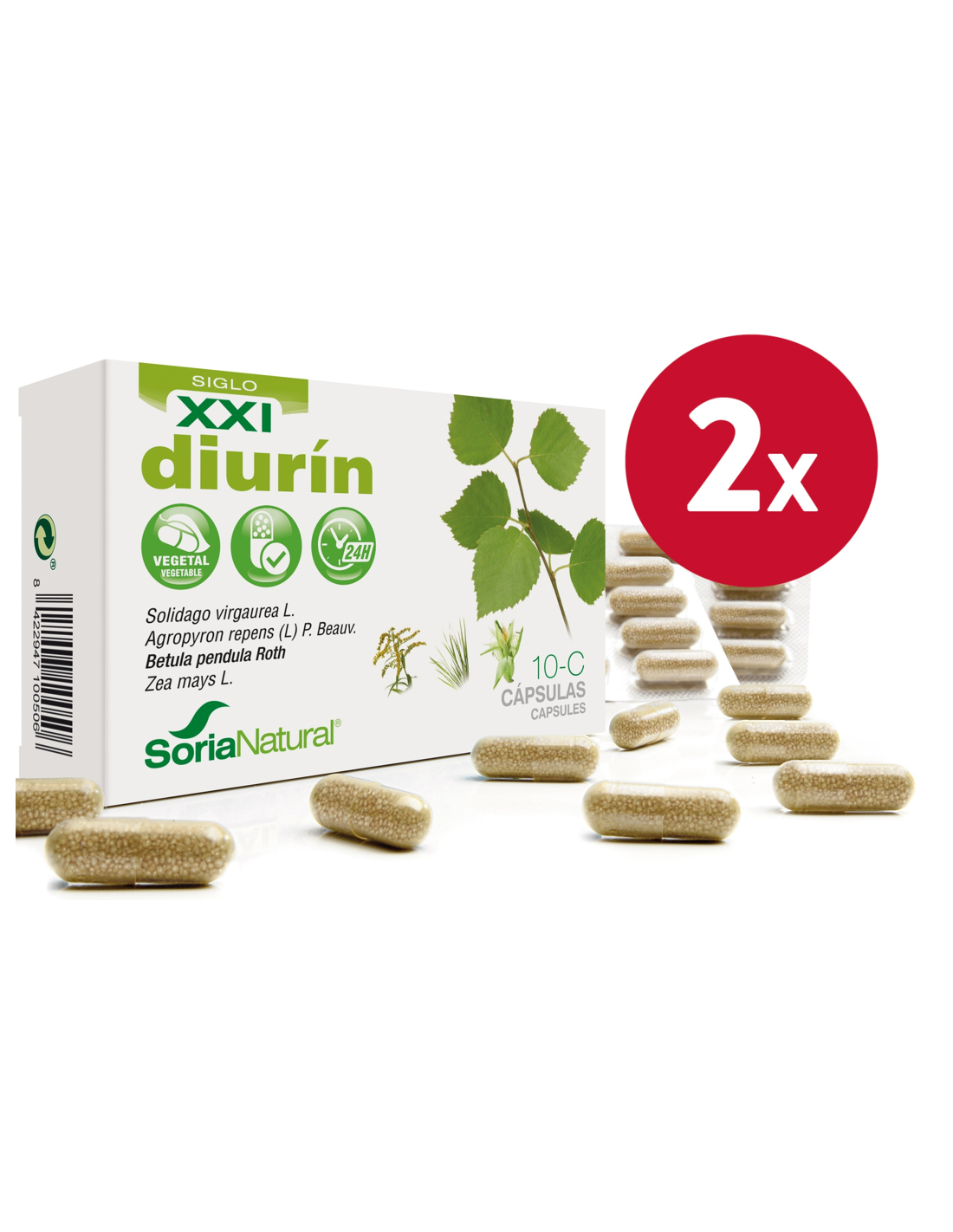 10 C Diurín (Fórmula XXI)Soria Natural, con su centro de I+D+i a la vanguardia, ha evolucionado la línea de cápsulas vegetales, creando la nueva gama de cápsulas de "liberación prolongada", diseñadas para conseguir una mayor riqueza en principio activo y eficacia terapéutica, además de una mayor comodidad de dosificación. En estas nuevas cápsulas de "liberación prolongada" se libera inicialmente una cantidad de principio activo suficiente para producir su efecto y el resto se va liberando a una velocidad predeterminada durante períodos de tiempo prolongados.