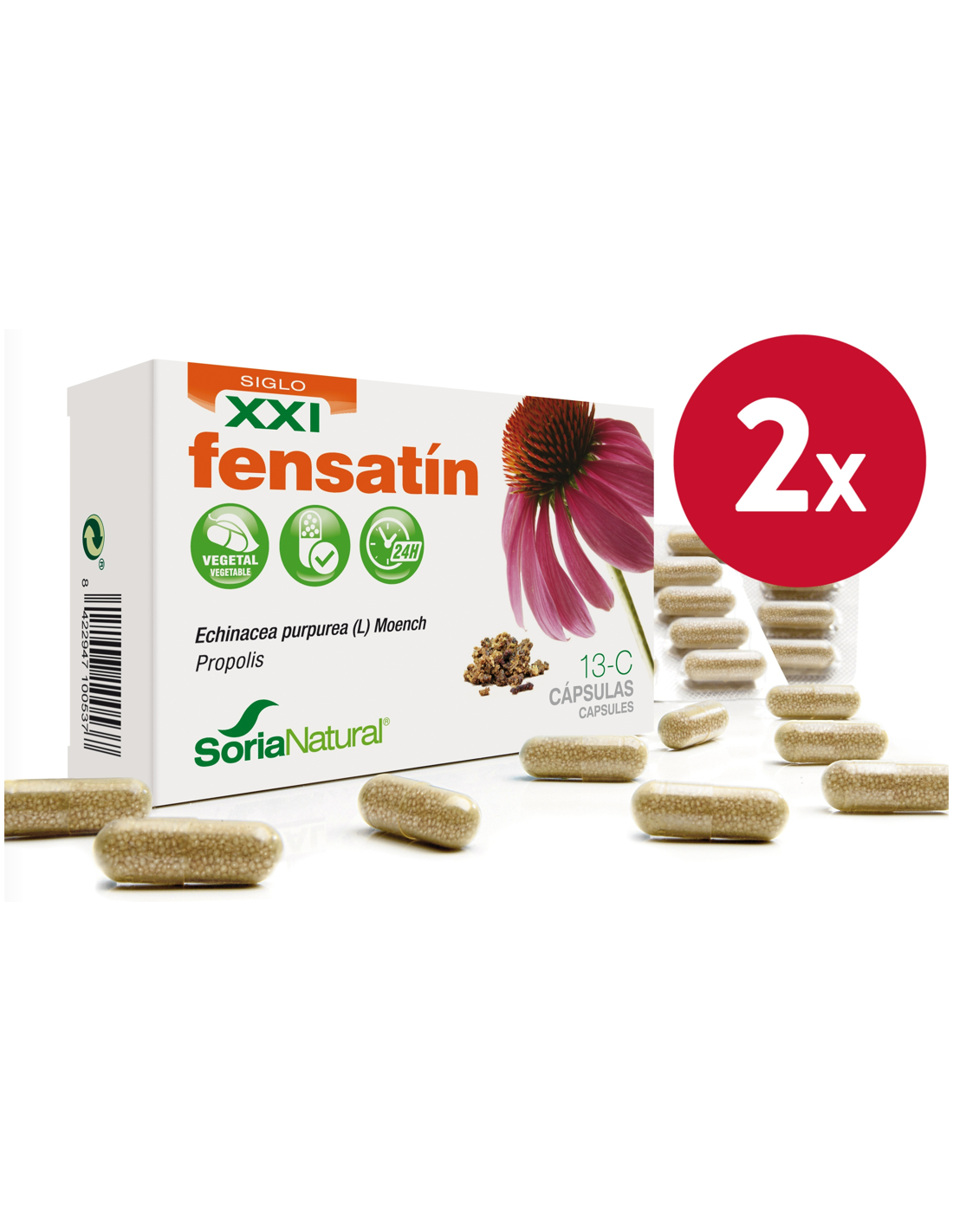 13 C Fensatin (Fórmula XXI) de Soria Natural, con su centro de I+D+i a la vanguardia, ha evolucionado la línea de cápsulas vegetales, creando la nueva gama de cápsulas de "liberación prolongada", diseñadas para conseguir una mayor riqueza en principio activo y eficacia terapéutica, además de una mayor comodidad de dosificación. En estas nuevas cápsulas de "liberación prolongada" se libera inicialmente una cantidad de principio activo suficiente para producir su efecto y el resto se va liberando a una velocidad predeterminada durante períodos de tiempo prolongados.