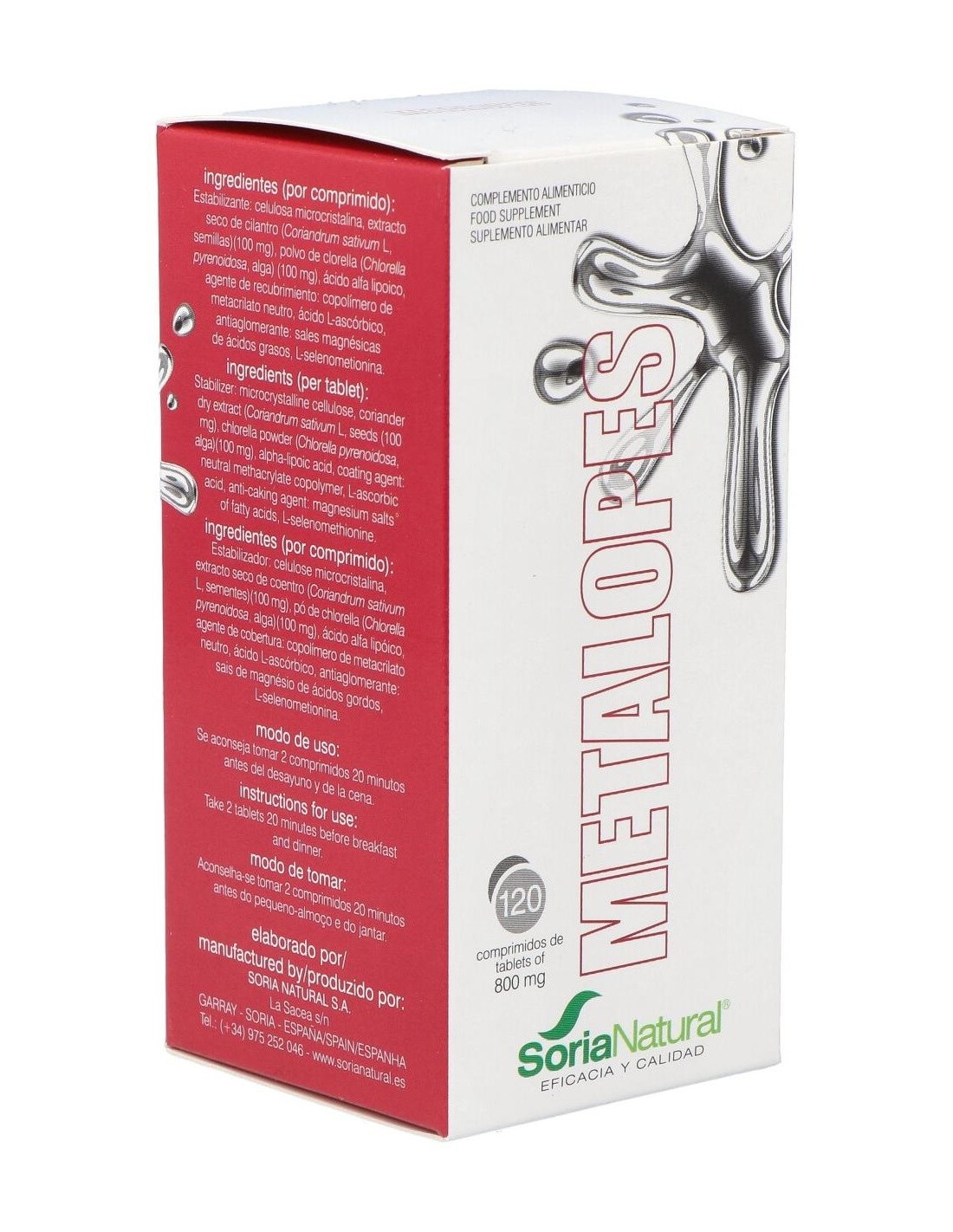 SORIA NATURALMetalopes 120Comp. de Soria Natural es un complemento alimenticio dirigido a personas que buscan apoyar su bienestar diario. Con una fórmula equilibrada, contribuye al mantenimiento de funciones corporales normales.