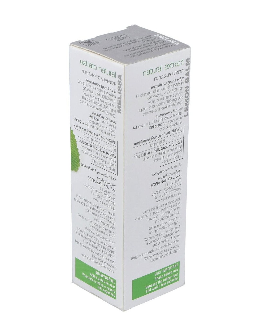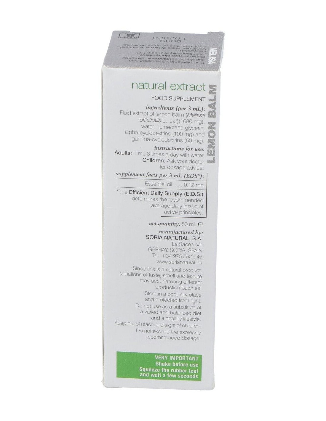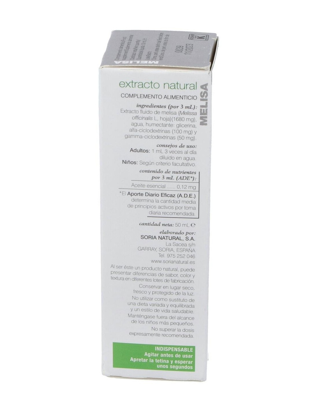 - Extracto de melisa en presentación líquida de 50 ml, facilitando su dosificación y uso.