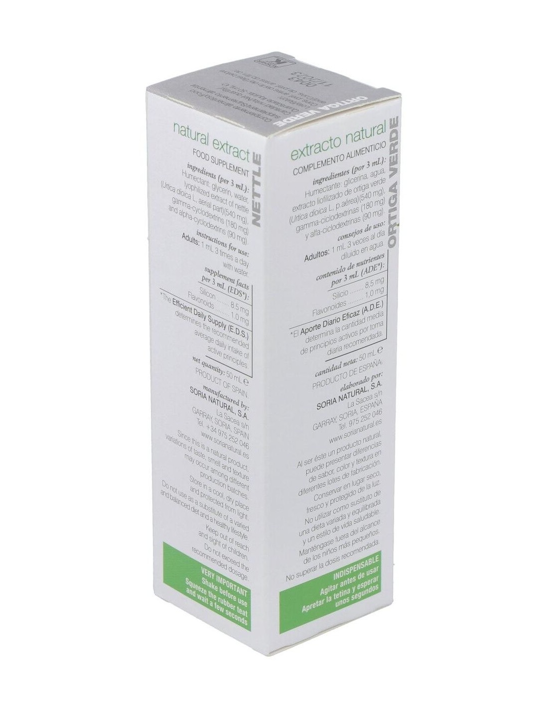 SORIA NATURALEste extracto de ortiga verde tiene como propiedades el ser antihemorrágica (corta hemorragias), remineralizante, diurética, antidiabética, antirreumá