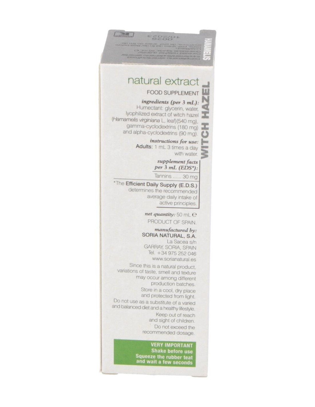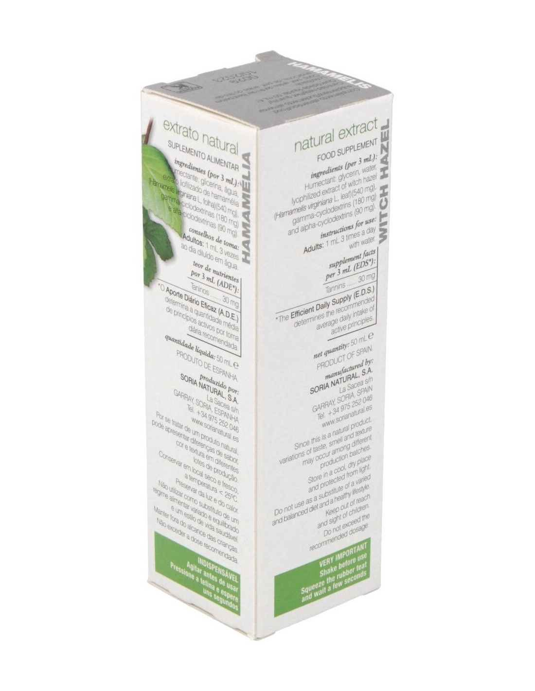 SORIA NATURALEste extracto de hamamelis tiene como propiedades el ser un vasoconstrictor venoso, tener acción vitamínica P, y ser astringente y antihemorrágico (co