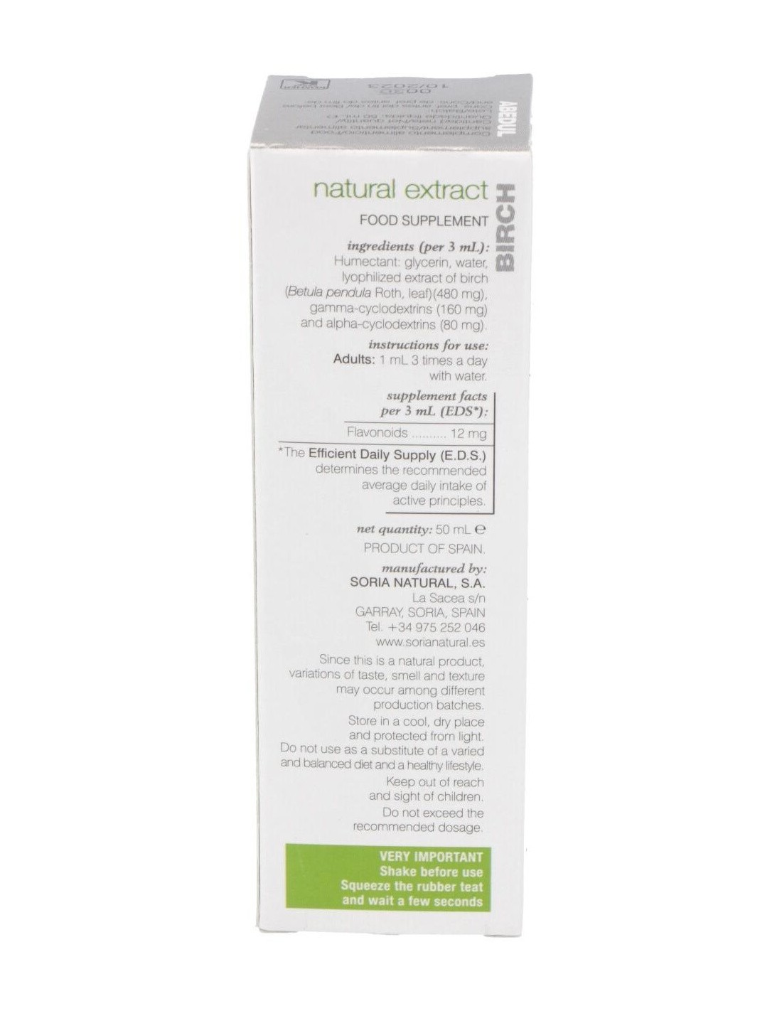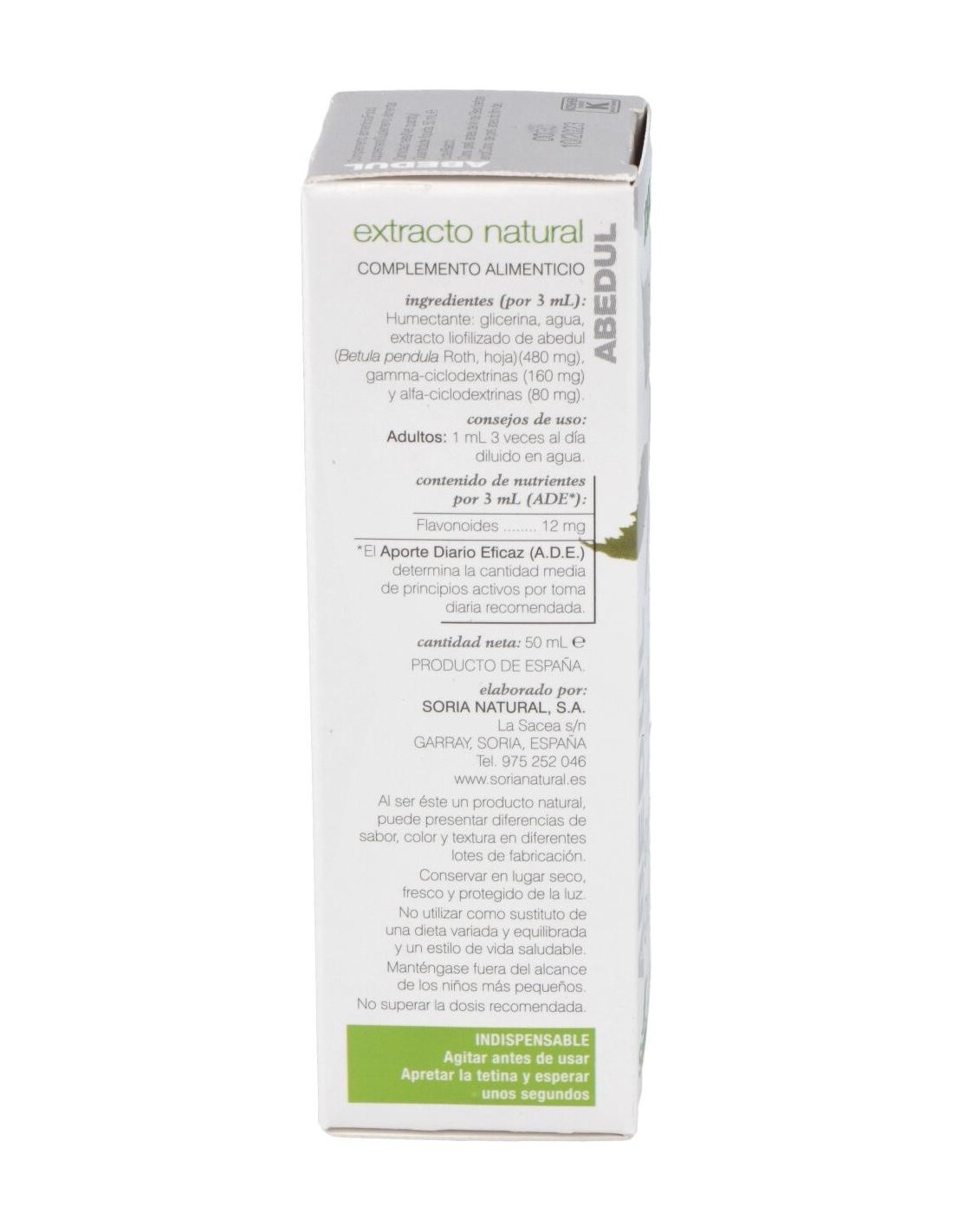 SORIA NATURALEl extracto de abedul resulta un buen diurético (aumenta la producción de orina) que actúa de forma suave y no irritativa. Favorece la eliminación de