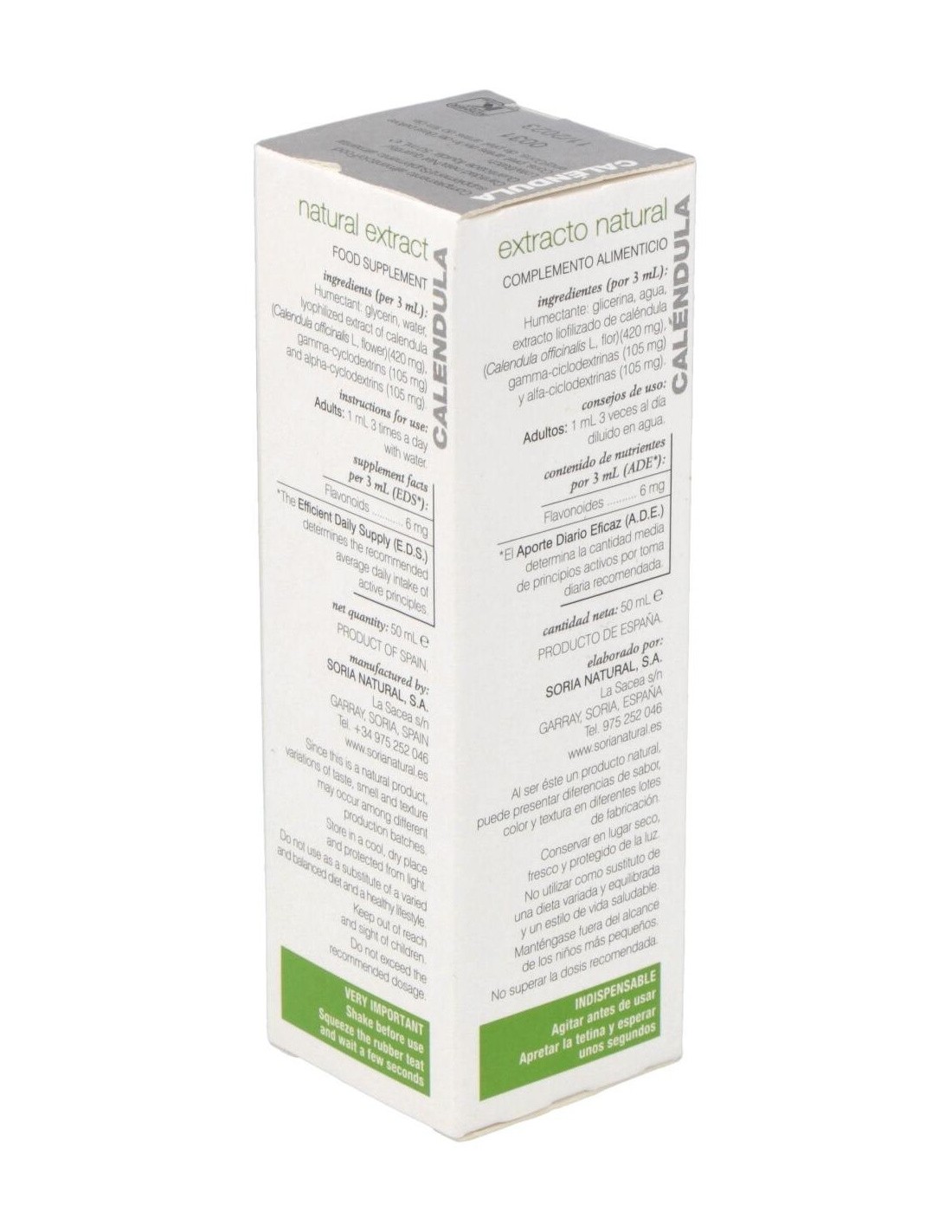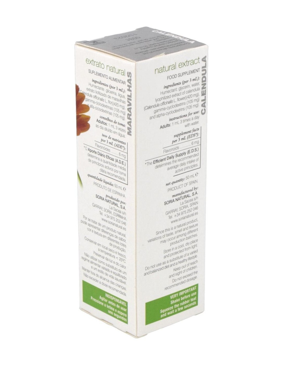 SORIA NATURALEste extracto de Caléndula tiene propiedades antiinflamatoria, antiséptica, cicatrizante, regulador de las menstruaciones (emenagoga), antiespasmódica
