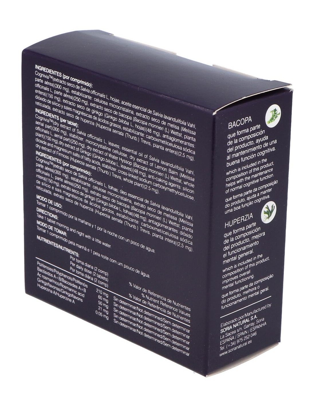 SORIA NATURALComplemento alimenticio con Bacopa y Huperzia. Bacopa ayuda al mantenimiento de una buena función cognitiva.